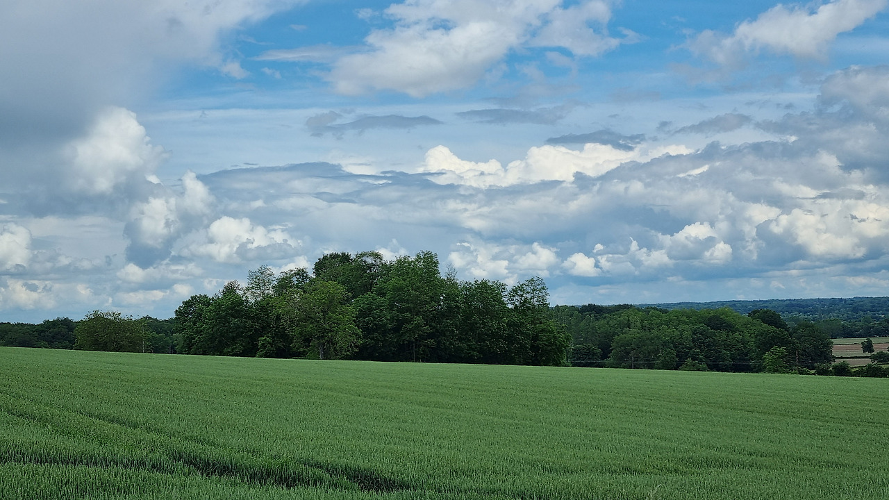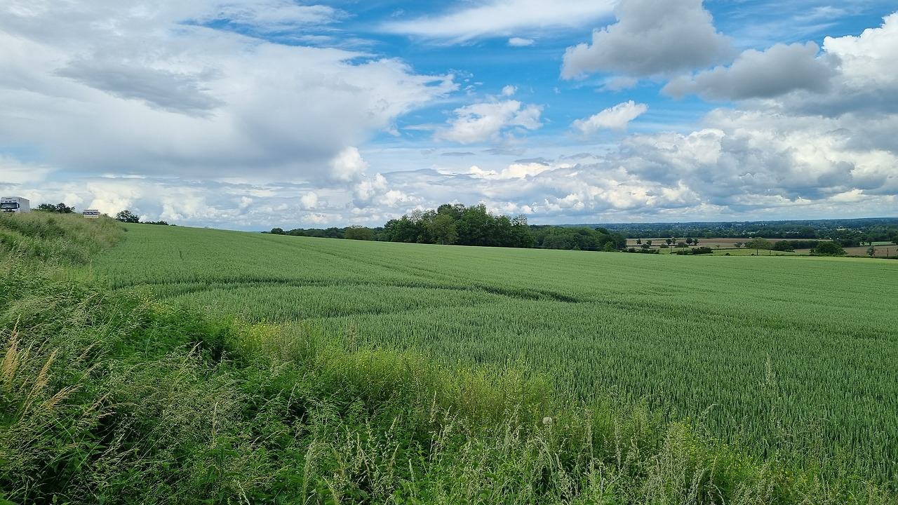 아무리 달려도 산은 보이지 않는다. 그저 완만한 낮은 언덕이 나타날 뿐이다. 이곳은 넓은 평야이지만 그렇다고 해서 완전히 평평한 땅은 잘 보이지 않는다. 낮은 언덕들이 이어지면서 전체적으로 완만한 굴곡을 이루는 것 같다. 그러다가 한 번은 멀리 들판에서 20여 마리의 젖소들이 풀을 뜯고 있는 광경을 보았다. 사람이건 짐승이건 푸른 벌판 위에서 움직이는 생물은 처음 보았다. 달리다 보니 군데군데 작물을 심으려고 정리해 둔 밭들이 나타난다. 고랑을 만드는 우리와는 달리 이곳에는 땅을 아주 평평하게 정리하여 작물을 심는 것 같다.