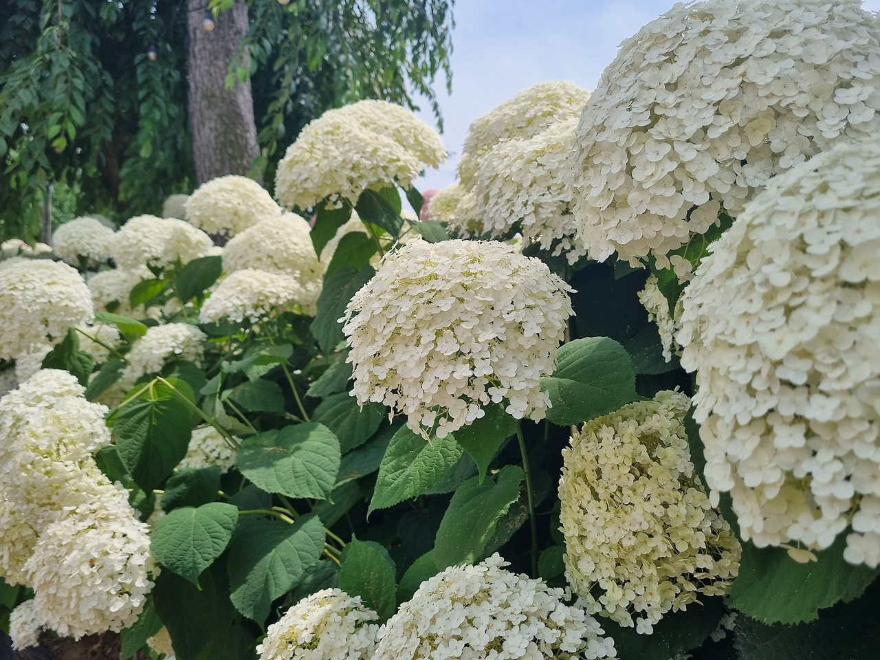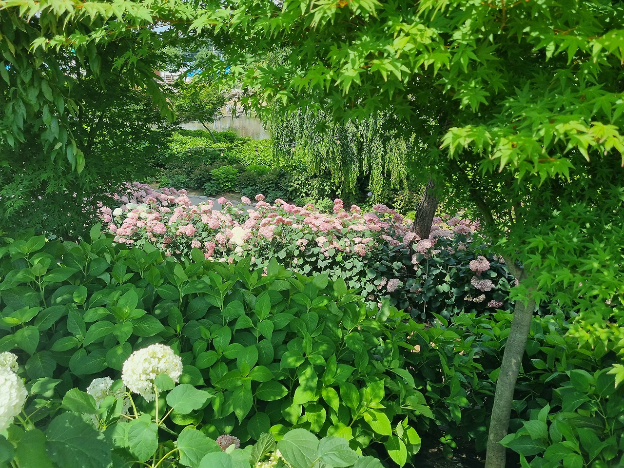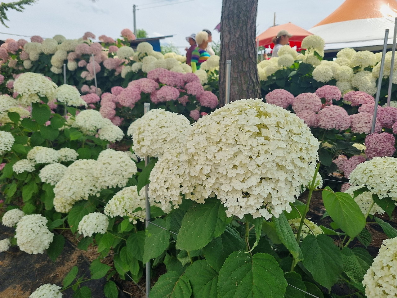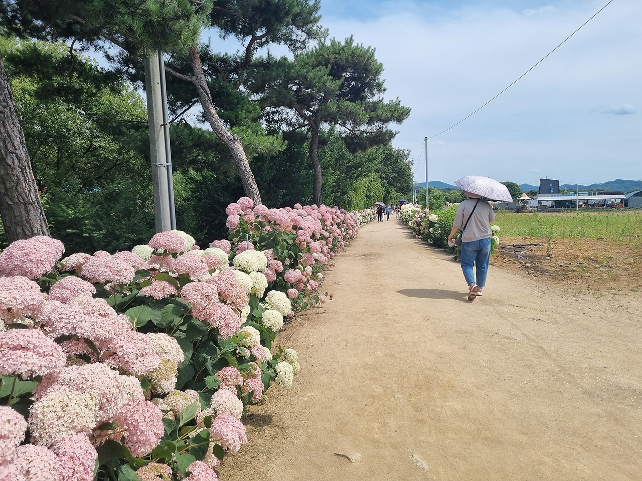 지난 주 3일동안 수국 축제를 했다고 하는데, 그래서 그런지 꽃이 조금 시들어져 간다. 나는 수국 가운데 푸른색 수국을 가장 좋아한다. 그런데 이곳에는 흰색 수국이 대부분이고 분홍색 수국 약간, 푸른색 수국은 거의 없다. 흰색 수국은 꽃이 아주 활짝 피었는데, 분홍 수국은 조금 시들어간다.