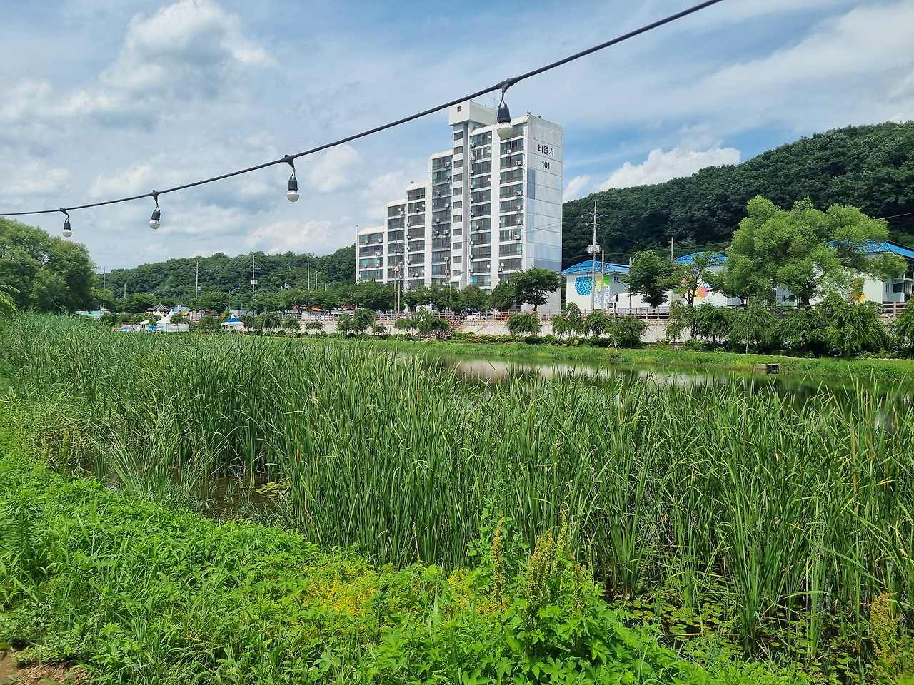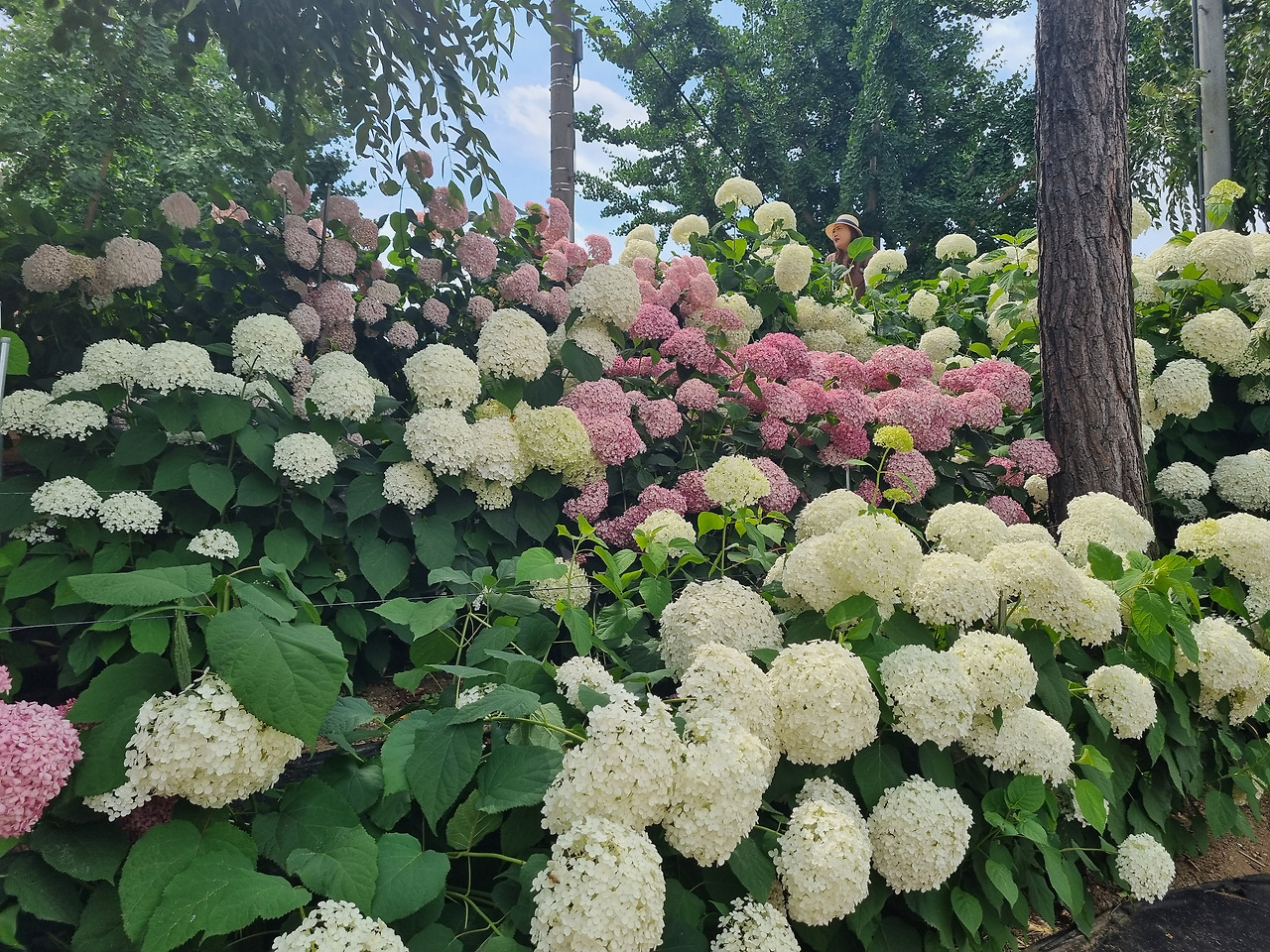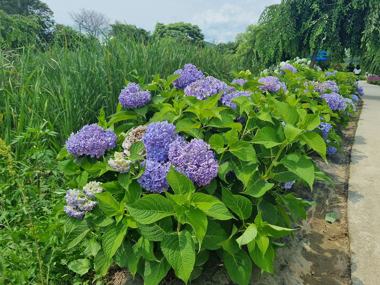 그런데 이곳 세종시 가까운 곳에도 수국공원이 생겼다. 바로 공주유구색동수국 공원이라는 곳이다. 몇년전 공주시 유구읍을 흐르는 개천 둑방길과 개천 아래 수국 공원이 조성되었다. 약간 철이 지난 감도 있지만, 수국이 만발하였다.