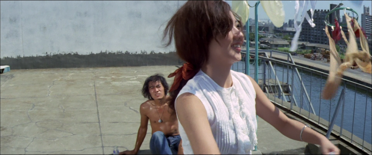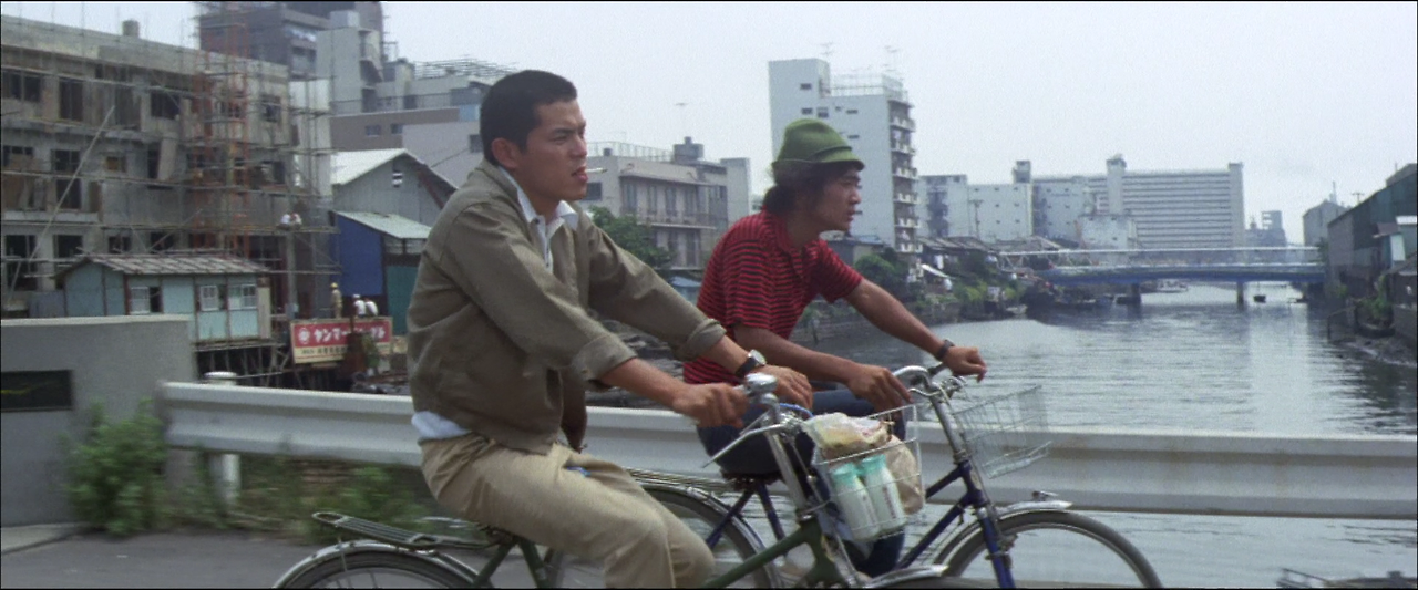 동경 델타지역 창고 거리의 한 구석에 있는 미요시(三好) 고무회사 제1창고가 위치하고 있다. 이곳에는 꾀죄죄한 모습의 30대 남자 기쿠지(菊地)와 당당한 체격의 10대 후반의 겐타로(健太郎), 그리고 여자 경리직원인 타네 세 사람이 근무하고 있다. 겐타로는 저녁에 야간학교에 다니기 때문에 일찍 퇴근하는데, 겐타로가 퇴근 후 기쿠지는 타네에게 청혼한다. 타네는 기쿠치에게 "내가 어떤 여자인지 아느냐"며 차갑게 되묻는다.