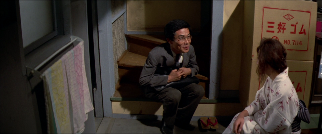 타네는 창고 2층 구석에 있는 낡은 방에서 혼자 살고 있다. 오늘도 밤늦게 사장인 미요시(三好)가 찾아온다. 미요시는 타네를 정부로 두고 있다. 타네가 미요시에게 기쿠지가 자신에게 청혼한 일을 털어놓자, 미요시는 충실한 부하직원에게 타네를 넘기는 것도 괜찮다고 생각하여 타네에게 결혼하라고 권고한다. 다음날 타네는 기쿠지에게 결혼하겠다고 대답한다. 기쿠지는 기뻐하며 어머니로부터 물려받은 다이야 반지를 타네에게 선물한다.