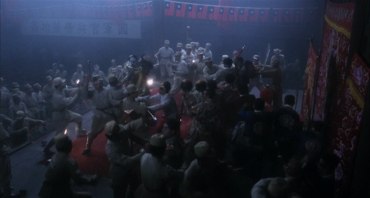 중일전쟁이 격화되기 시작한 1937년 북경은 일본군에 의해 점령된다. 우미인 역을 맡은 접의의 모습은 일본군 장교들을 반하게 하지만, 소루는 일본군에게 적대적인 태도를 보여 체포된다. 국선은 접의에게 소루와 헤어지겠으니 소루를 빼내달라고 부탁한다. 접의는 일본군 장교들 앞에서 목단정(牡丹亭) 춤을 춘다. 접의의 덕택으로 소루는 석방되었지만, 국선은 소루와 헤어지지 않는다. 낙담한 소루는 도박에 빠져 무대의상조차 팔아치우는 지경에 이른다. 한편 접의도 아편에 빠져든다. 양성소를 찾은 두 사람은 스승으로부터 꾸중을 듣고 다시 무대에 오르기로 마음먹는다. 그런데 공교롭게도 곧 스승이 죽어버려 양성소 극단은 해산되어 버린다. 양성소에 있던 사람들은 뿔뿔이 흩어지지만, 소사만이 갈 곳이 없다. 접의는 소사를 보고 자신의 옛 모습과 겹쳐져 제자로 받아들인다.