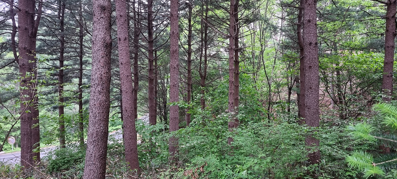 둔내를 출발하여 10분 남짓 청태산 자연휴양림에 도착하였다. 자연휴양림에 정통한 친구로부터 횡성 청태산 자연휴양림이 아주 좋다는 이야기를 몇 번이나 들었다. 약간의 절차를 거친 후 숙소인 <숲 속의 집>에 도착하였다. 주위는 온통 하늘 높이 곧게 뻗은 굵은 소나무이다. 그동안 여러 자연휴양림을 경험하였지만, 휴양림 안에 이렇게 좋은 나무들이 도열해 있는 곳은 흔치 않았다. 진한 숲 냄새가 코를 찌른다. 이곳 숲 속의 집은 통나무로 만들어졌다. 현관 앞에는 목련을 닮은 하얀 꽃이 피어있다. 휴양림에 올 때마다 나무 이름과 꽃 이름을 좀 많이 알았으면 좋겠다고 생각하는데 그것이 잘 안된다. 하여튼 이름은 모르지만 하얀 꽃이 탐스럽다.