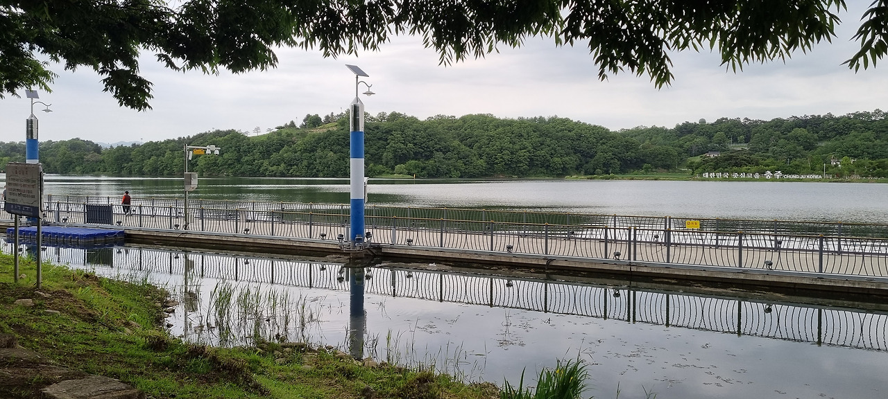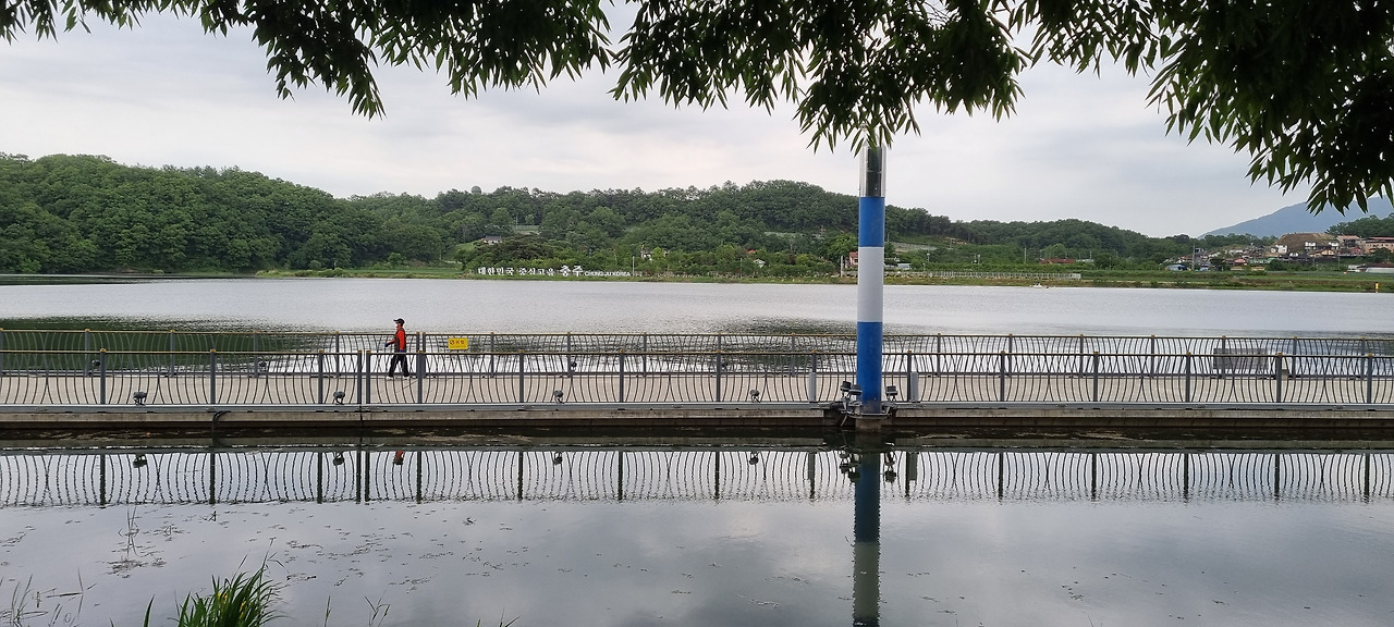 탑 주위로는 공원이 잘 조성되어 있다. 그리고 남한강 위로는 폭이 5미터는 훨씬 넘어 보이는 보행로가 강물을 따라 놓여있다. 보통 보행로는 강변에 만들어져 있는데, 이곳의 보행로는 강 가에서 5미터쯤 들어간 물 가운데 놓여있다. 시원한 강바람이 불어온다. 오늘 지금까지 꽤 걸었다. 강 가에 편한 모습을 한 사각형 의자가 놓여 있다. 잠시 피곤한 다리를 쉬려 의자에 앉으니 불어오는 강바람이 더없이 시원하다.