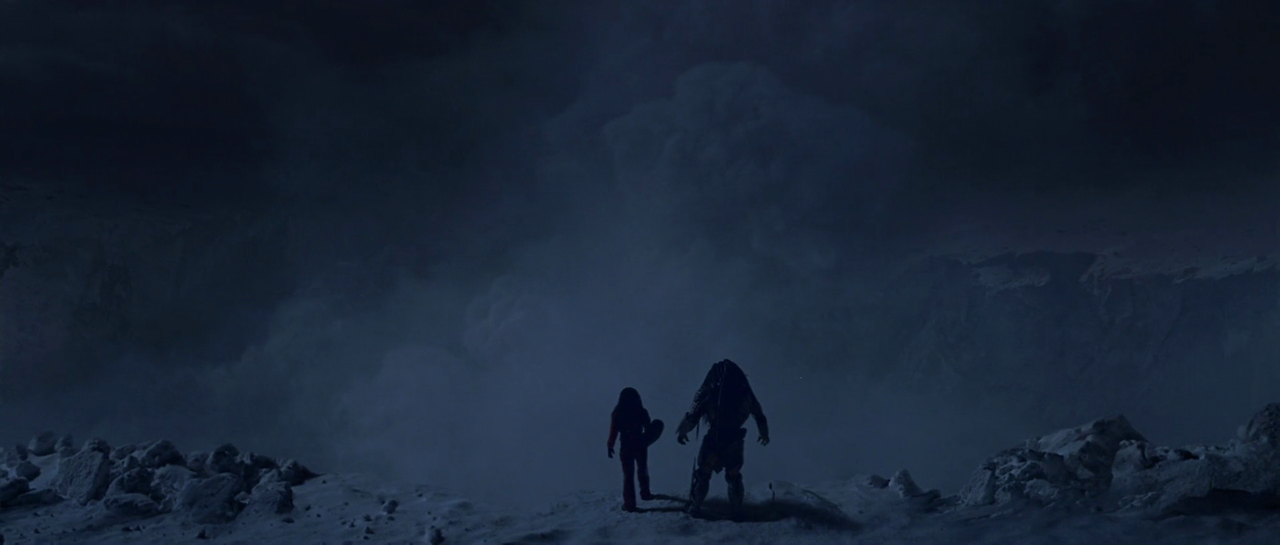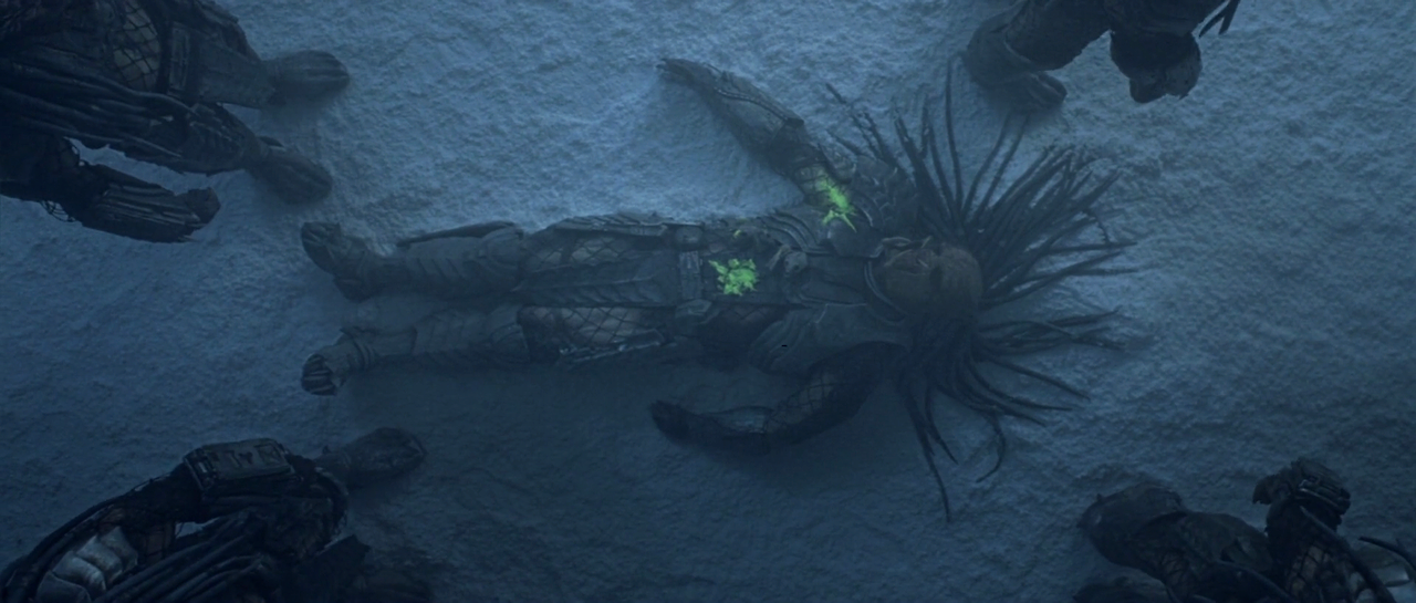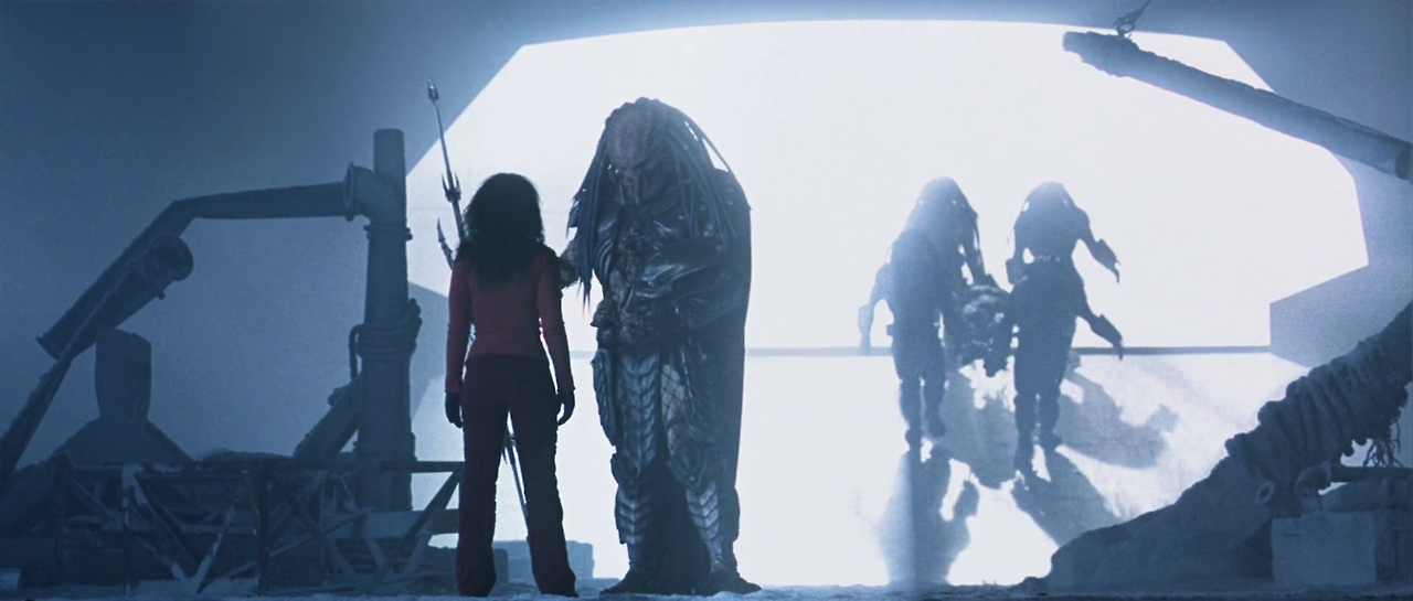 갑자기 동료 프레대터들이 우주선을 타고 지상에 내려와 죽은 프레대터의 시신을 거두어 간다. 그리고는 프레대터의 지도자가 알렉스의 용기를 칭찬하면서 한 자루의 창을 주고는 지구를 떠난다.