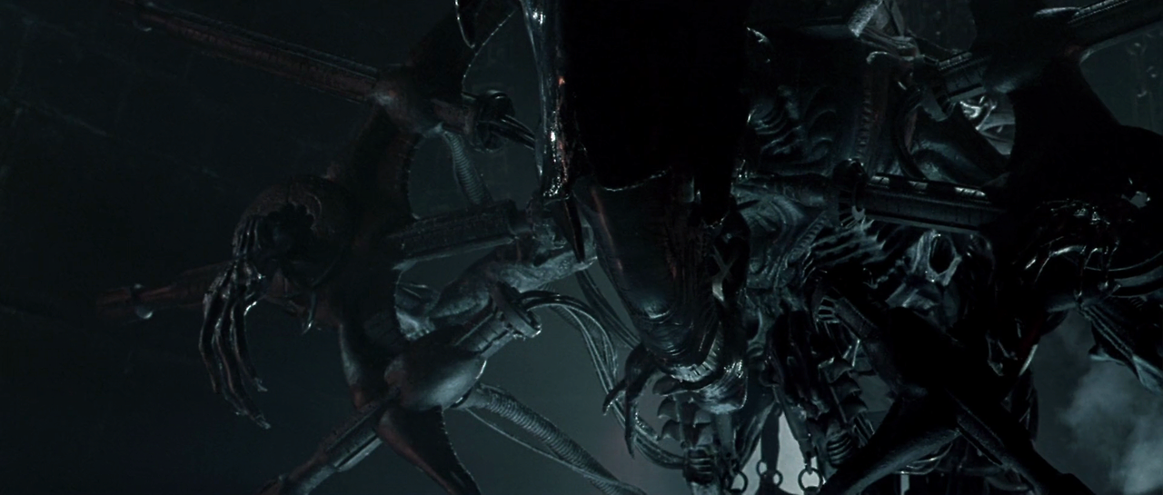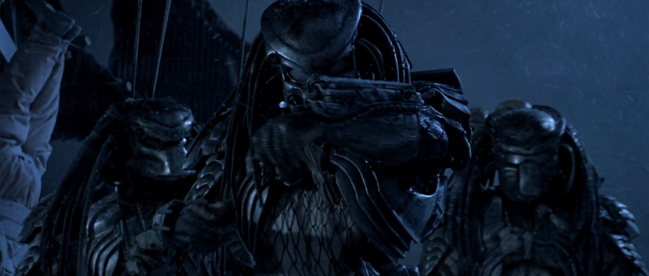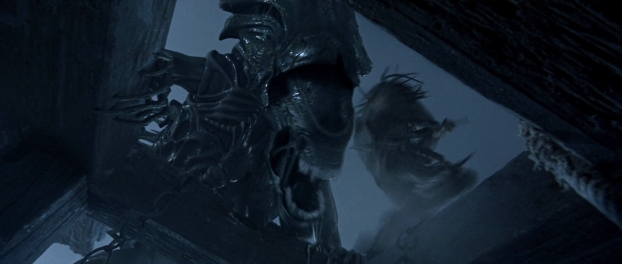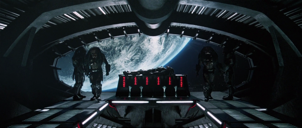 지구를 떠난 우주선 안의 침대에 프레대터의 시체가 누워있다. 그때 갑자기 프레태터의 배에서 체스트 버스터(제노모프의 유충)가 나타난다.