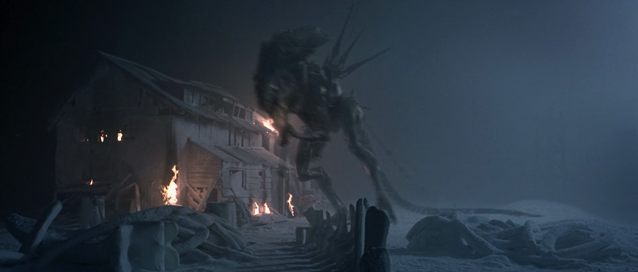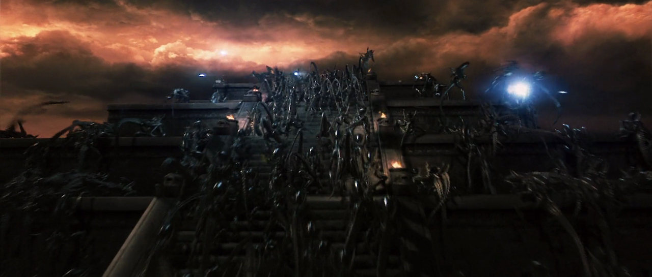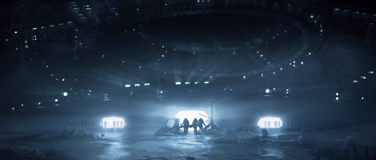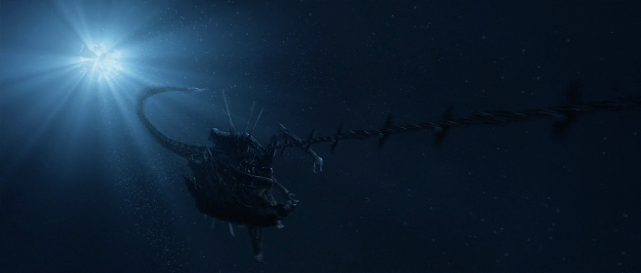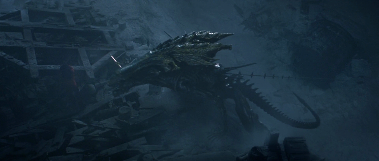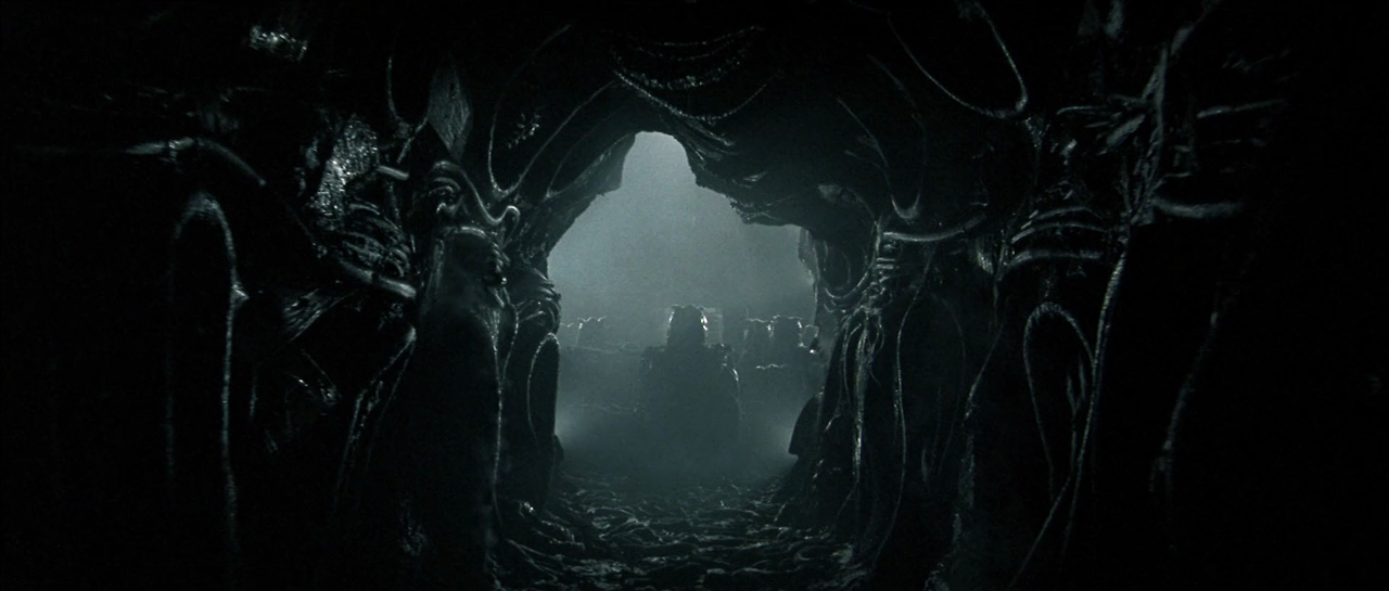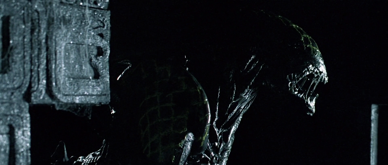 큰 구멍 아래에서는 멕시코 피라미드와 같은 모양의 건조물이 발견되었다. 조사단은 구조물 속으로 들어가는데, 도중에 대원 중 한 명이 밟은 바닥돌 가운데 하나가 가라앉기 시작했다. 그 바닥돌은 천천히 하강하였기 때문에 대원들은 이를 알아차리지 못하였다. 그런 변화 때문인지 지하 깊은 곳에서 얼음에 갇혀 있던 퀸 제이모프(에일리언의 성충체)가 눈을 뜨고 산란을 시작한다.