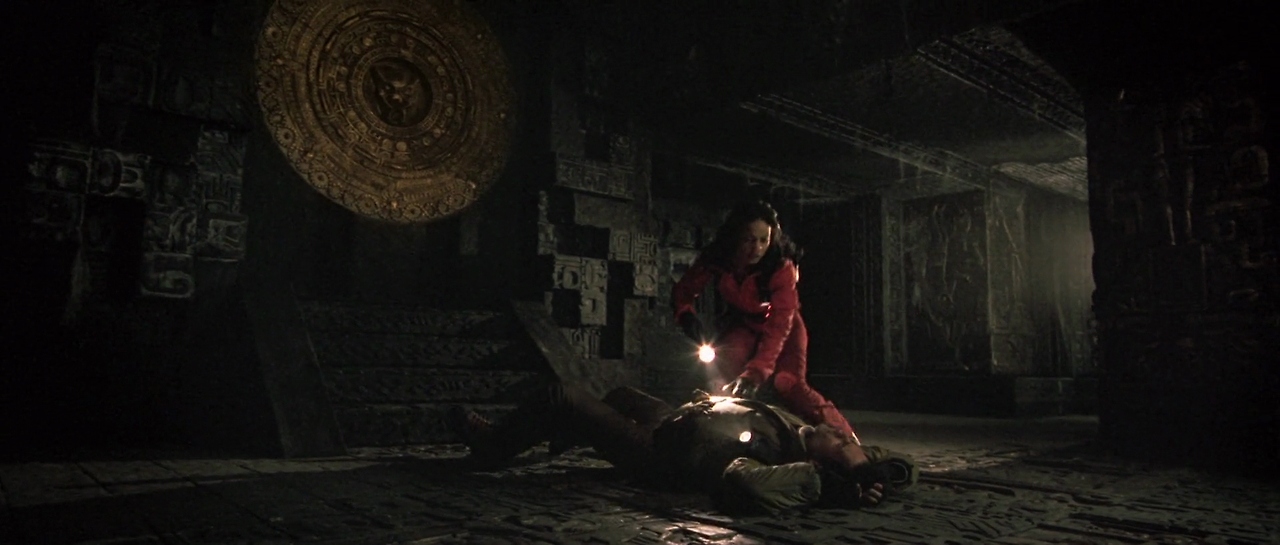 그런 가운데 조사팀은 피라미드 속에서 여러 개의 미이라가 누워있는 방을 발견한다. 미이라 옆에는 비문이 새겨져 있는데, 세바스찬의 조교 토마스는 비문의 글을 “사냥을 위한 재물로 바쳐졌다.”라고 해독한다. 탐사대는 그곳에 일부 조사팀을 남겨두고 더욱 지하로 내려가 석관을 발견한다. 세바스찬은 석관의 고대문자를 해독하여 석관을 여는데 성공한다. 그 속에서는 고대의 무기로 보이는 물건이 나타난다.