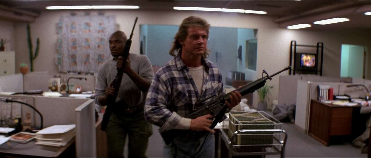 나다는 슈퍼마켓에서 무심코 외계인 중년 여성에게 끔찍하게 생겼다는 말을 해버린다. 그러자 그 여자 외계인은 경찰을 부른다. 경찰들도 모두 외계인이다. 나다는 경찰에게 체포될 뻔하지만 그들의 총을 도로 빼앗아, 거리에서 보이는 외계인들을 향해 마구 총을 쏜다. 경찰에 쫓기던 나다는 지나가던 여성 홀리를 위협하여 그녀의 집으로 간다. 홀리는 진짜 인간이었다. 홀리의 집에서 나다가 잠시 방심하는 사이에 홀리가 나다를 창문에서 밀어 떨어트린다. 곧 경찰들의 달려오자 나다는 다시 도망간다.