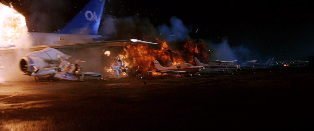 특공대가 탄 스텔스기는 테러리스트들의 타고 있는 여객기 뒤로부터 접근하여 여객기와 도킹을 한다. 특공대원들은 좁은 이동통로를 통해 여객기로 잠입하려 하는데, 이때 돌풍이 불어 특공대원들은 큰 위기에 빠진다. 이 작전의 리더인 트래비스 중령이 겨우 이동통로를 정상으로 돌리나, 그 자신은 돌풍에 휩쓸려 추락하고 만다.