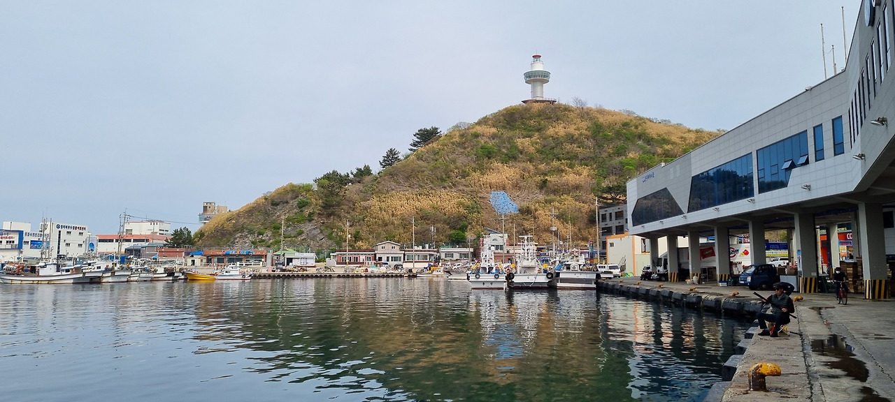 축산항에 들어가니 항구는 아주 한산하였다. 항구 바로 옆에 있는 수산물 공판장은 이미 장이 끝난 탓인지 장사를 하는 사람이 거의 보이지 않는다. 항구의 규모는 그래도 중간 이상 되는 것 같았으나, 지금은 배가 드나들 때가 아니라서 그런지 좀 쓸쓸한 느낌이 들 정도로 활기가 없다. 배도 고파오고 해서 적당히 점심을 먹을 곳이 없을까 하고 찾아보았지만 그다지 마음에 끌리는 곳이 없다.