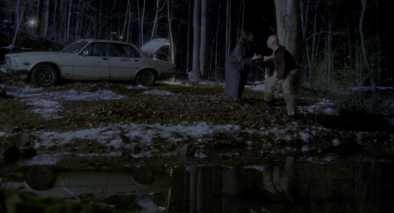 돌아오는 길에 캐서린은 자신의 차에 올라타는 제임스를 다시 만난다. 제임스는 자신을 필라델피아로 데려다 달라고 요구한다. 필라델피아는 12 몽키 트레이드 마크가 처음으로 등장한 곳이었다. 이동하는 도중 라디오에서 캐서린이 실종되었다는 뉴스가 흘러나온다. 그 뉴스에 이어 이번에는 아이가 우물에 빠져 행방불명이 되었다는 뉴스가 나온다. 그 뉴스를 들은 제임스는 별 것 아니라면서 아이의 장난이라고 말해준다. 얼마뒤 뉴스에서는 이 사건이 아이의 장난에 의한 것이었다는 말이 흘러나온다. 그제야 캐서린은 자신이 미래에서 왔다는 제임스의 말이 정말이라고 믿는다.