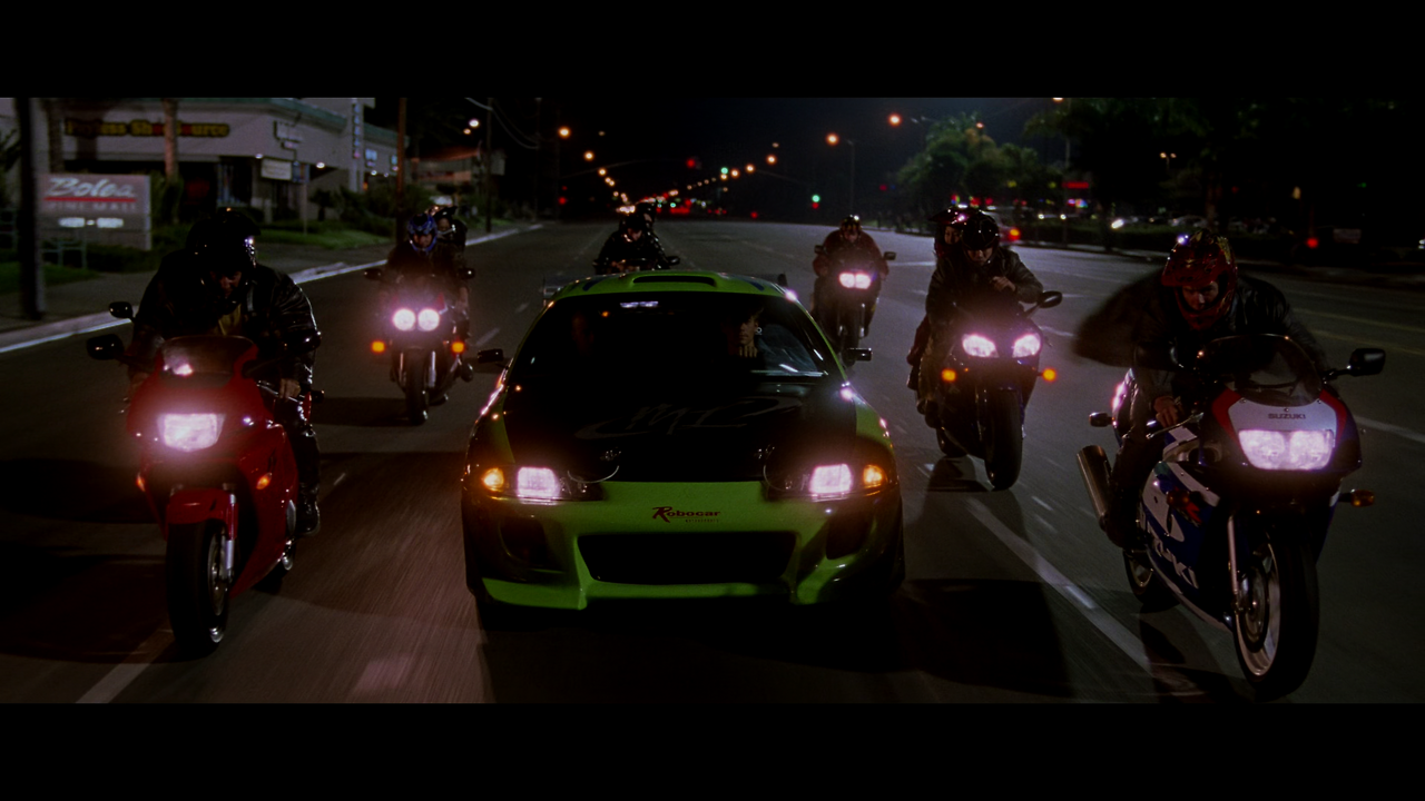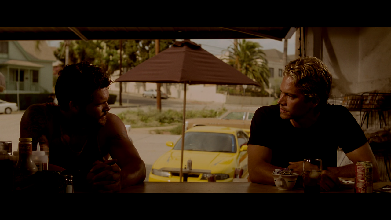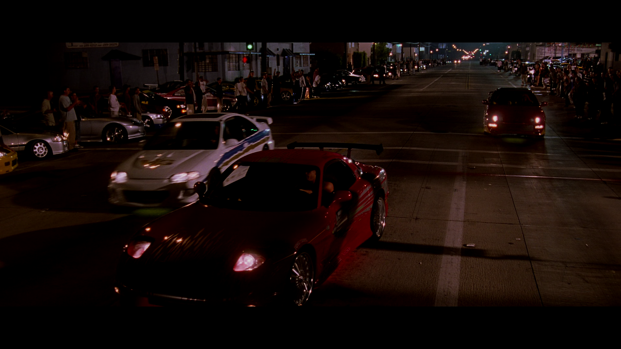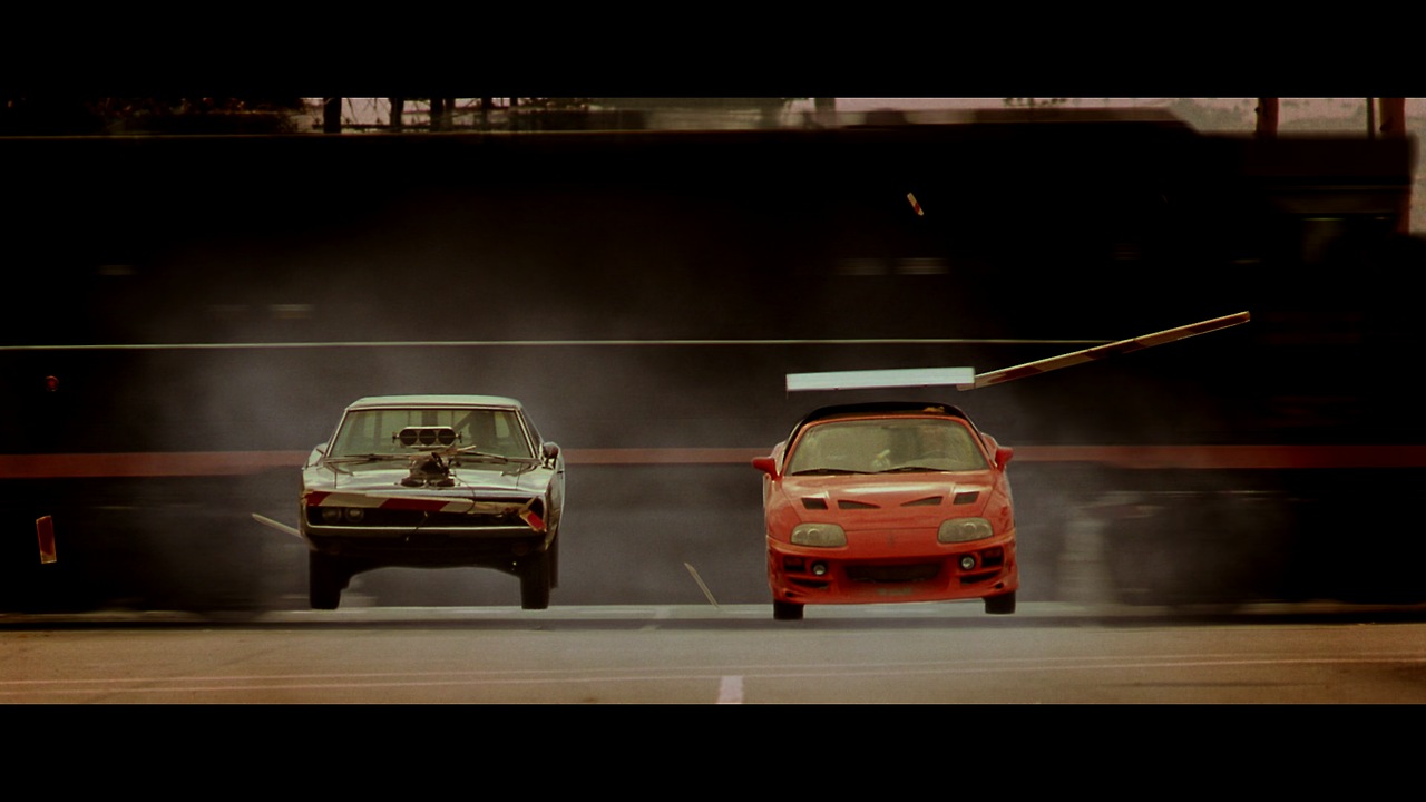 싸움이 끝난 후 도미닉은 차져를 몰고 달리지만, 브라이언의 그 뒤를 따른다. 도미닉은 신호등 앞에 멈춰 서서는 여기가 고등학교 때 드래그 레이싱을 했던 곳이라 말해준다. 신호등이 녹색으로 바뀌자 브라이언과 도미닉은 레이스를 시작한다. 두 사람은 서로 조금도 양보하지 않는다. 그러던 중 도미닉의 차는 갑자기 등장한 트레일러에게 부딪혀 대파된다. 멀리서 경찰차의 사이렌이 울리자, 브라이언은 도미닉에게 자신의 차의 열쇠를 건네준다.