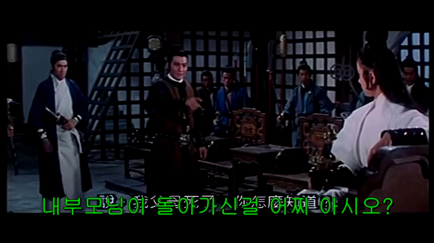 마을 주점은 손님들로 떠들썩하다. 갑자기 몇 명의 무뢰한들이 손님들을 위협하며 공포분위기를 만든다. 이들의 행패에 모두 겁이 질려 있는 가운데, 주점 한쪽 귀퉁이에서 술을 마시던 미녀 검객이 이들을 간단히 제압해 버린다. 무뢰한들은 그냥 두지 않겠다며 씩씩대며 동료들을 부르러 주점을 나간다.