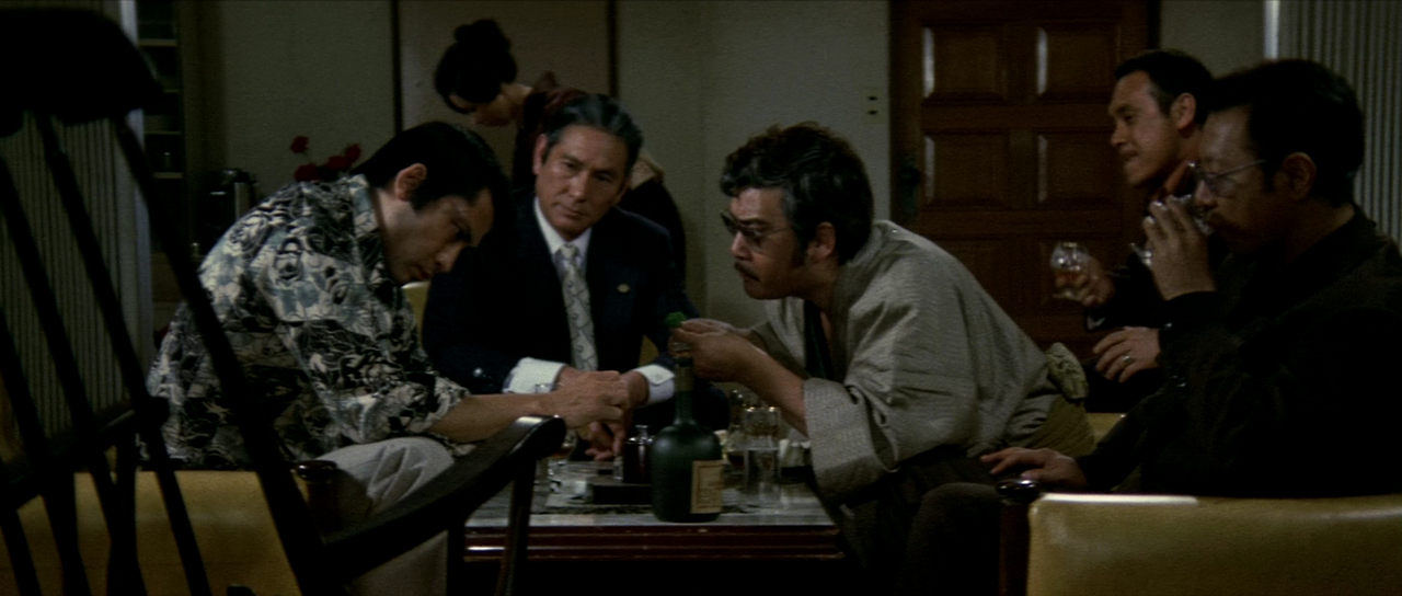 장기 형기를 마치고 출소한 히로노에게 다케다가 찾아온다. 일을 온건하게 해결하고 싶은 다케다는 세대교체를 설명하며 함께 은퇴하자고 요구한다. 며칠 후, 이번에는 마츠무라가 히로노를 찾아와 다케다가 은퇴하고 자신을 후계자로 지명했다는 사실을 알려준다. 그리고 히로시마와 쿠레시(呉市)의 모든 조직이 하나로 뭉친 의의를 이야기하며, 히로노파를 천정회에서 융숭하게 대접할 테니 그 대신 히로노 자신은 은퇴하라고 압박을 가한다. 히로노는 다케다의 은퇴에 충격을 받지만, 마츠무라가 천정회를 수중에 넣고 있다는 점을 지적하면서 대답을 유보한다.