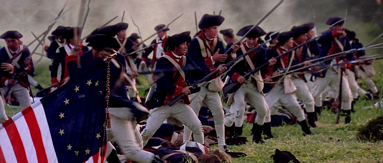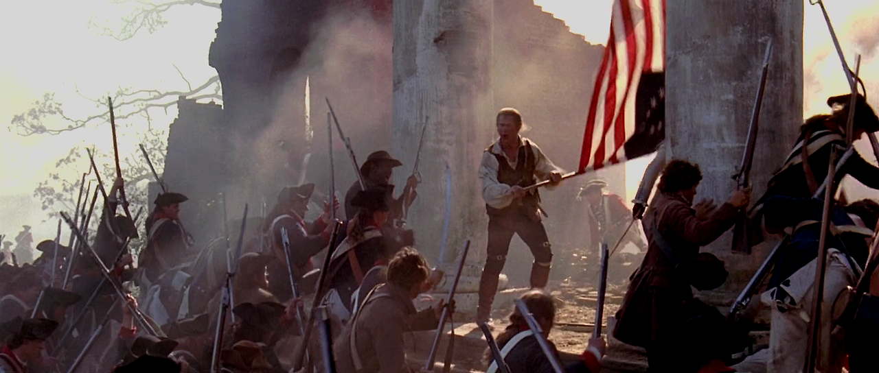 어쩔 수 없이 미군이 후퇴하기 시작한다. 총검을 꽃은 영국군들이 뒤를 추격하면서 미군들을 무차별 학살한다. 일단 후퇴하여 전열을 가다듬은 미군은 벤자민이 휘두르는 성조기를 신호로 재반격을 시작한다. 그렇지만 밀려드는 영국군의 기세가 워낙 강하다. 그 기세에 눌린 미군 병사들은 다시 뒤돌아 도망치기 시작한다. 그렇지만 벤자민은 혼자서 성조기를 흔들며 목이 터져라 공격을 외친다. 도망치던 미국들은 그 모습에 용기를 얻어 전열을 가다듬어 다시 반격에 나선다. 기세가 오른 미군의 공격에 다시 영국군이 흠칫한다.