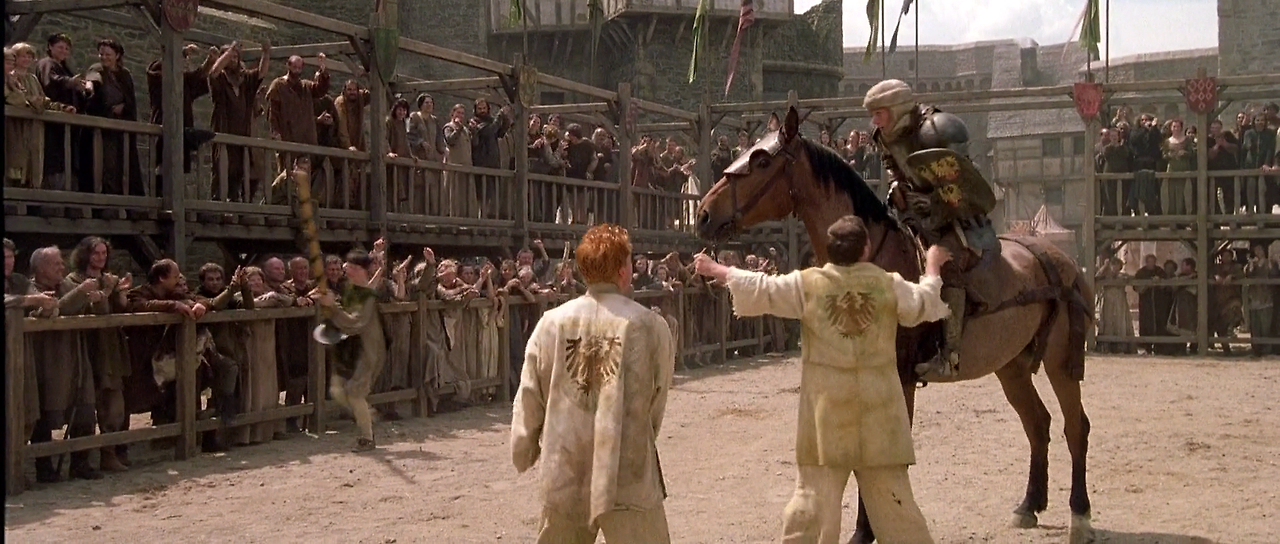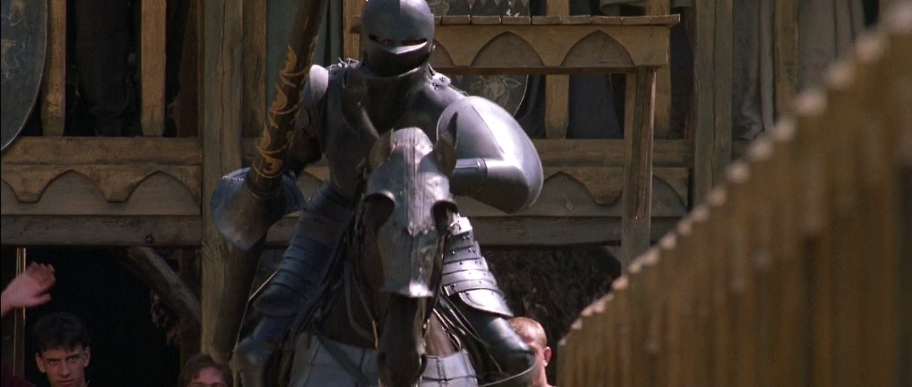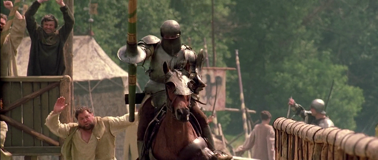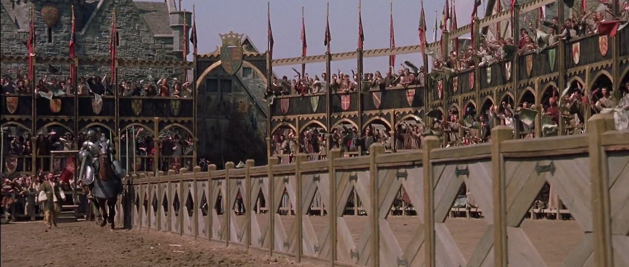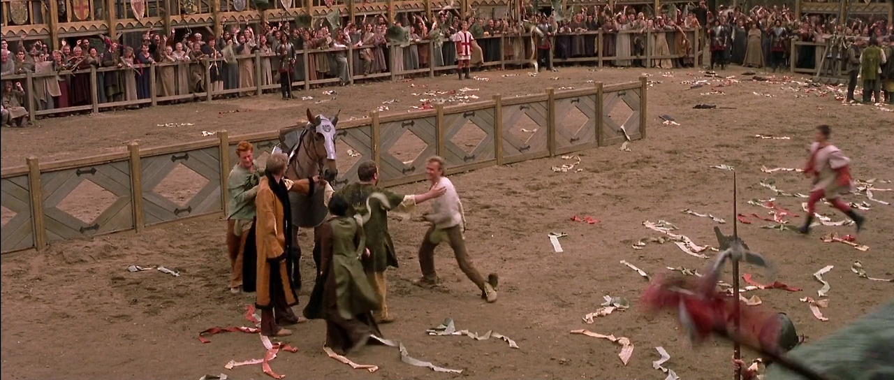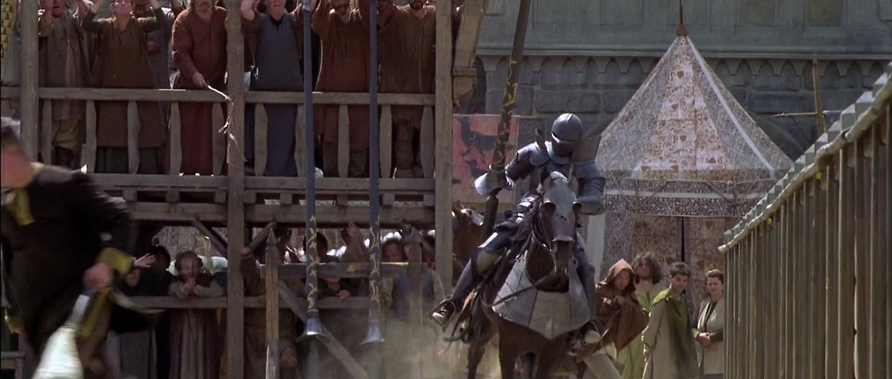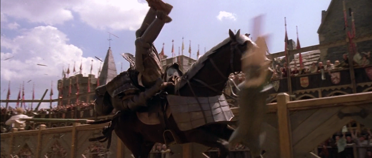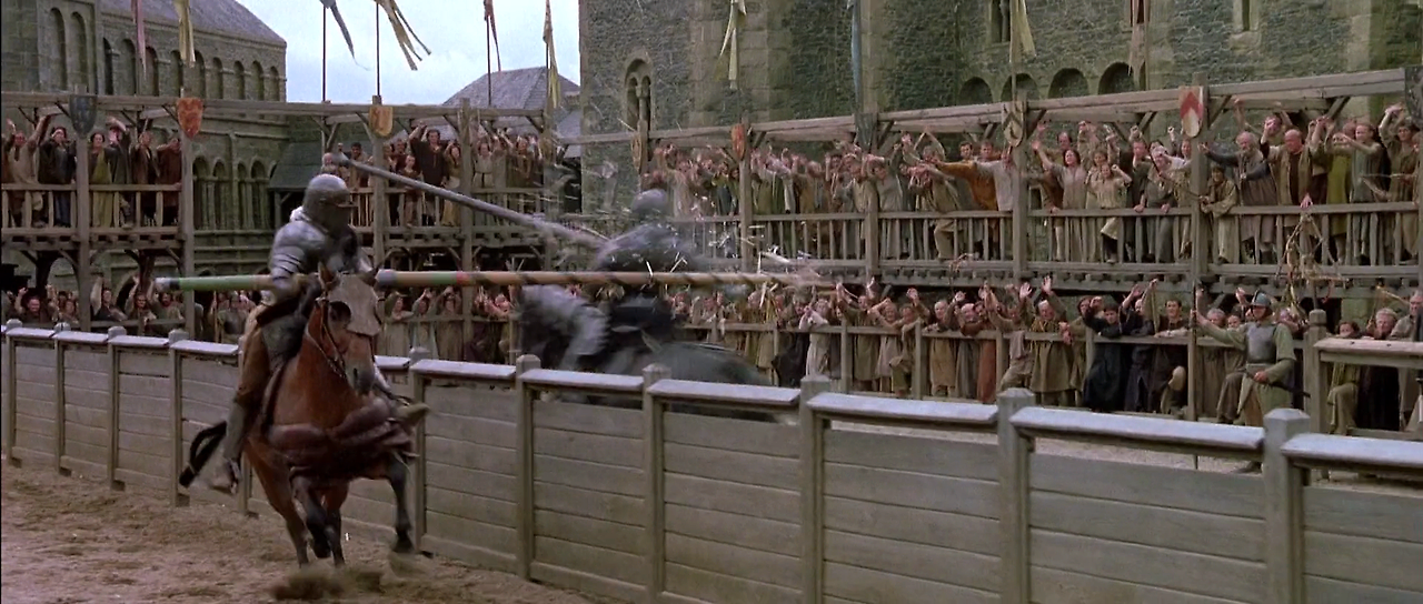 보통 토너먼트 시합이 나오는 영화를 보면 상대에게 찌른 창이 크게 갈라 찢어진다. 그 모습을 보고 이전에는 창을 왜 저렇게 약하게 만들었을까 생각하곤 했다. 알고 보니 일부러 그런 것이었다. 두 기사가 서로 창을 겨누고 마주 보고 달리며 창을 찌르는데, 창이 쉽게 찢어지지 않으면 상대방에게 치명적인 타격을 주게 된다. 시합에 참가한 사람들을 보호하기 위해 될 수 있도록 창을 약하게 만들어야 하는 것이다. 어쨌든 이 영화에서 토너먼트 시합은 정말 실컷 감상하였다.