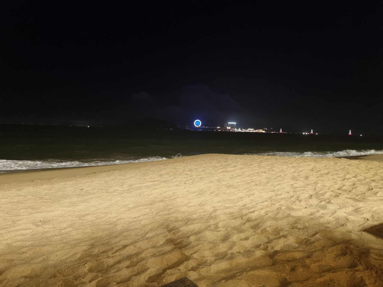 오후 6시가 되자 완전히 깜깜한 밤이다. 보름달에 가까운 달이 해변을 비춘다. 선선한 바닷바람이 부는 해변길 산책은 기분이 그만이다. 적당한 노천카페를 찾아 백사장 위에서 바다를 바라보는 자리를 잡았다. 맥주 한 잔 했으면 하는 마음이 간절하다. 그렇지만 이번 여행에서는 술을 가급적 줄이기로 했다. 과일주스를 주문했다.