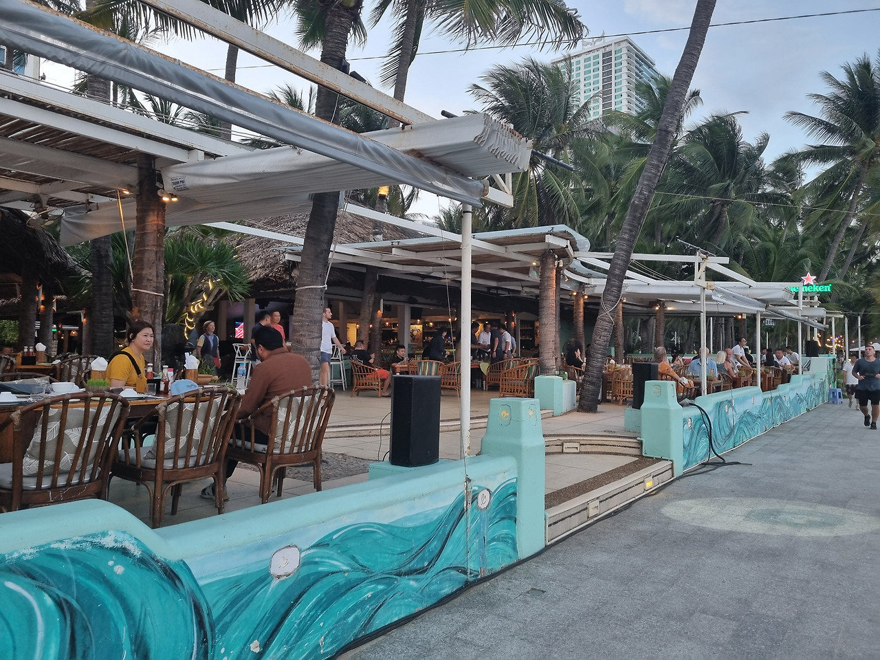 다시 도로를 건너 해변으로 건너갔다. 해변이 아주 좋다. 깨끗하고 산책길도 아주 쾌적하다. 야자수를 비롯한 열대 나무가 많아 햇빛을 받지 않고 산책을 할 수 있다. 배가 고프다. 식당은 도로 건너편에 있다. 여기서 제일 큰 스트레스는 도로를 건너는 일이다.