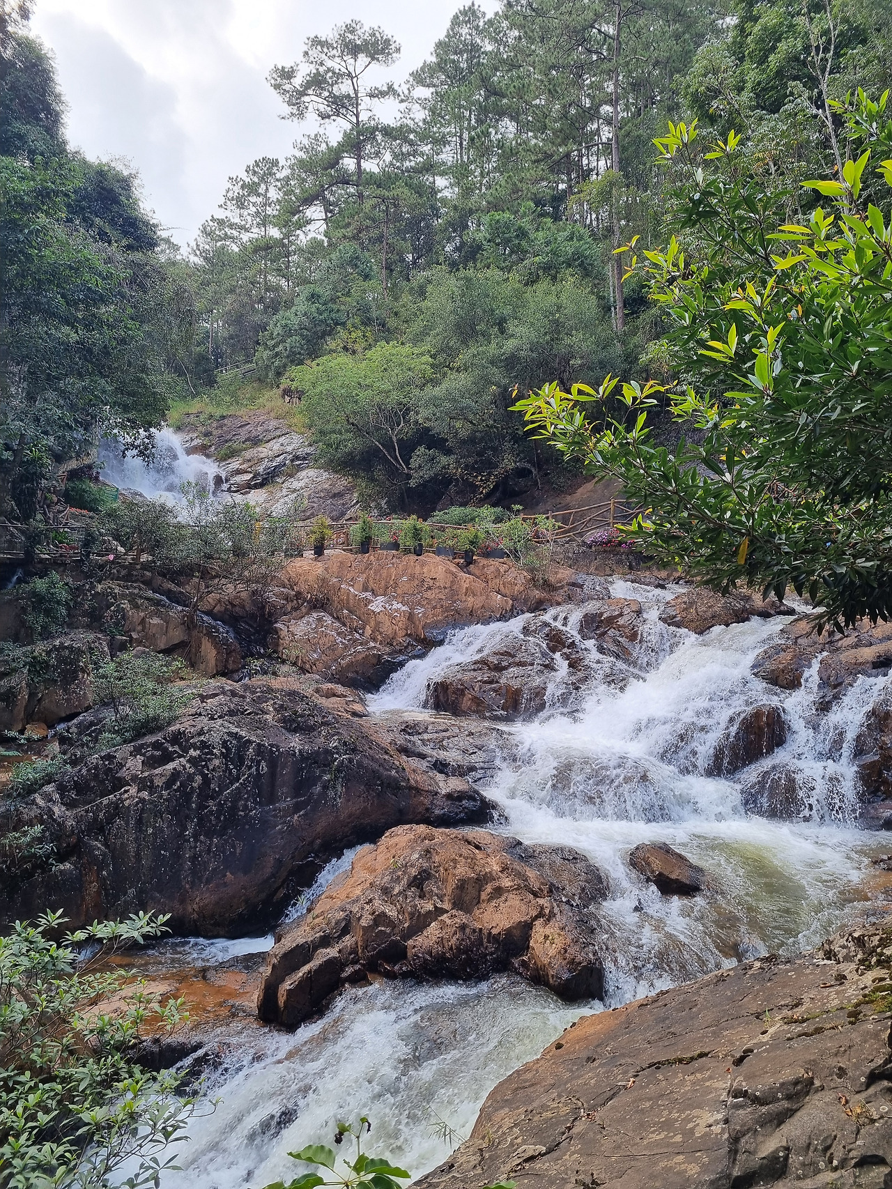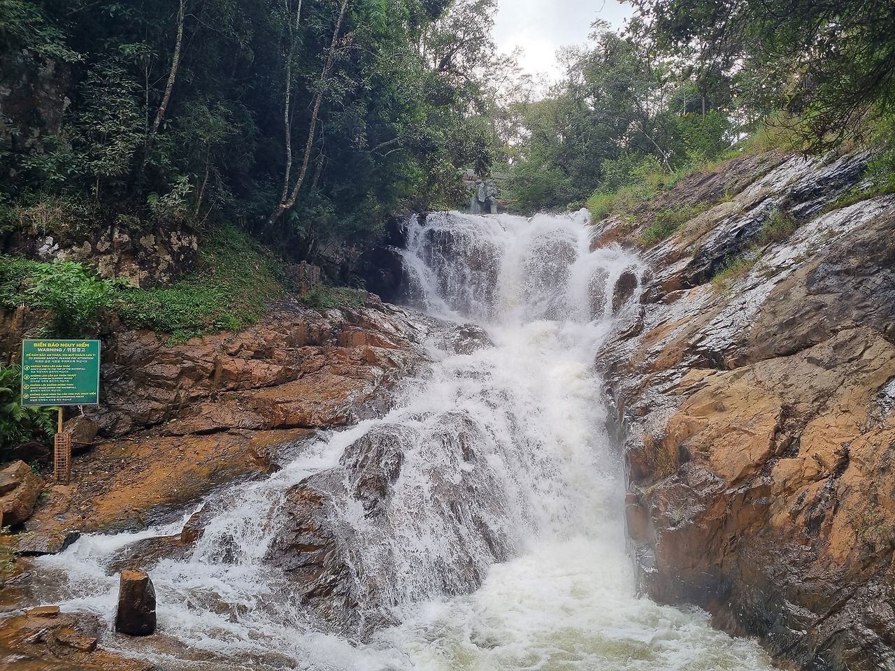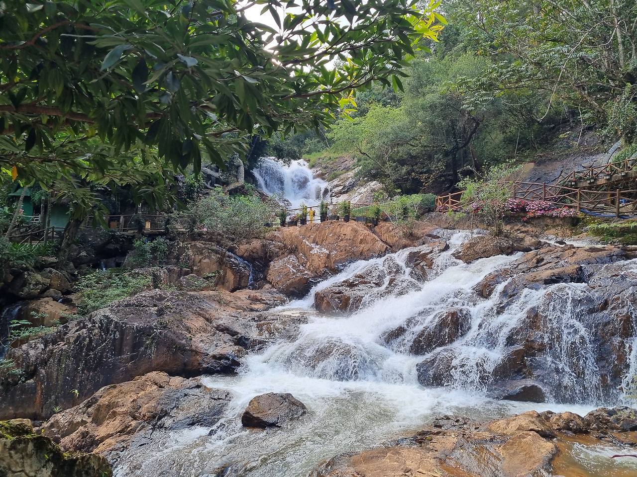 시원한 계곡 바람이 불어와 기분이 무척 상쾌하다. 위쪽 바위 위에서 떨어진 큰 폭포는 다시 낮고 작은 폭포를 이루다가 아주 좁고 깊은 계곡으로 흘러내린다. 이곳은 아무 곳에나 카메라를 갖다 대어도 그냥 그림이 된다. 벤치에 앉아 쉬고 있으니 시간 가는 줄을 모르겠다. 아직 달랏 여러 곳을 가 본 것은 아니지만, 여기가 최고다.
