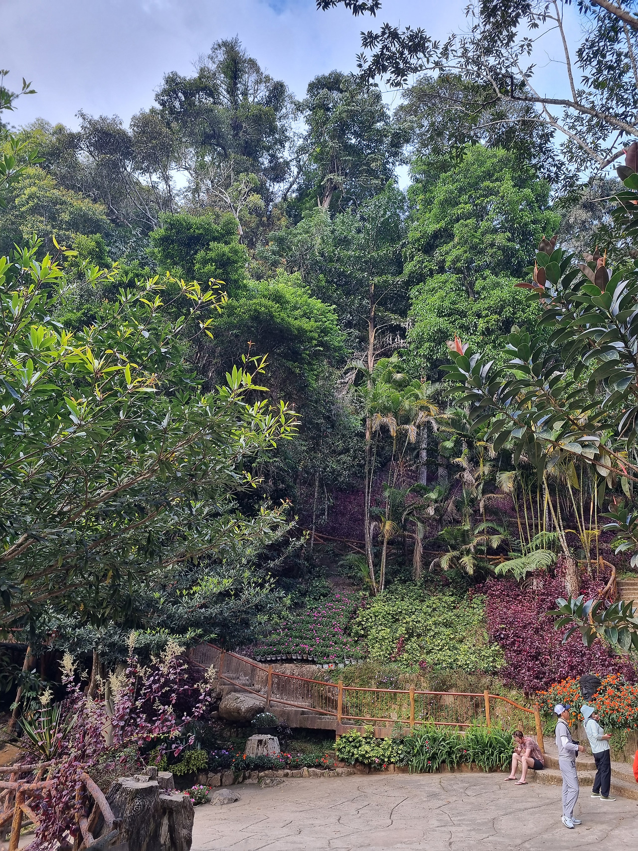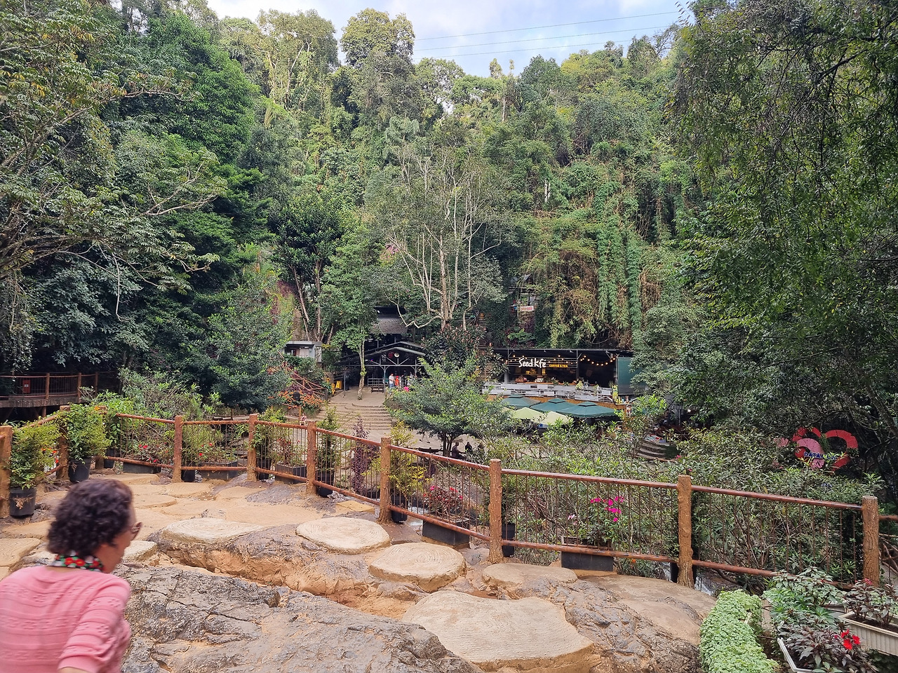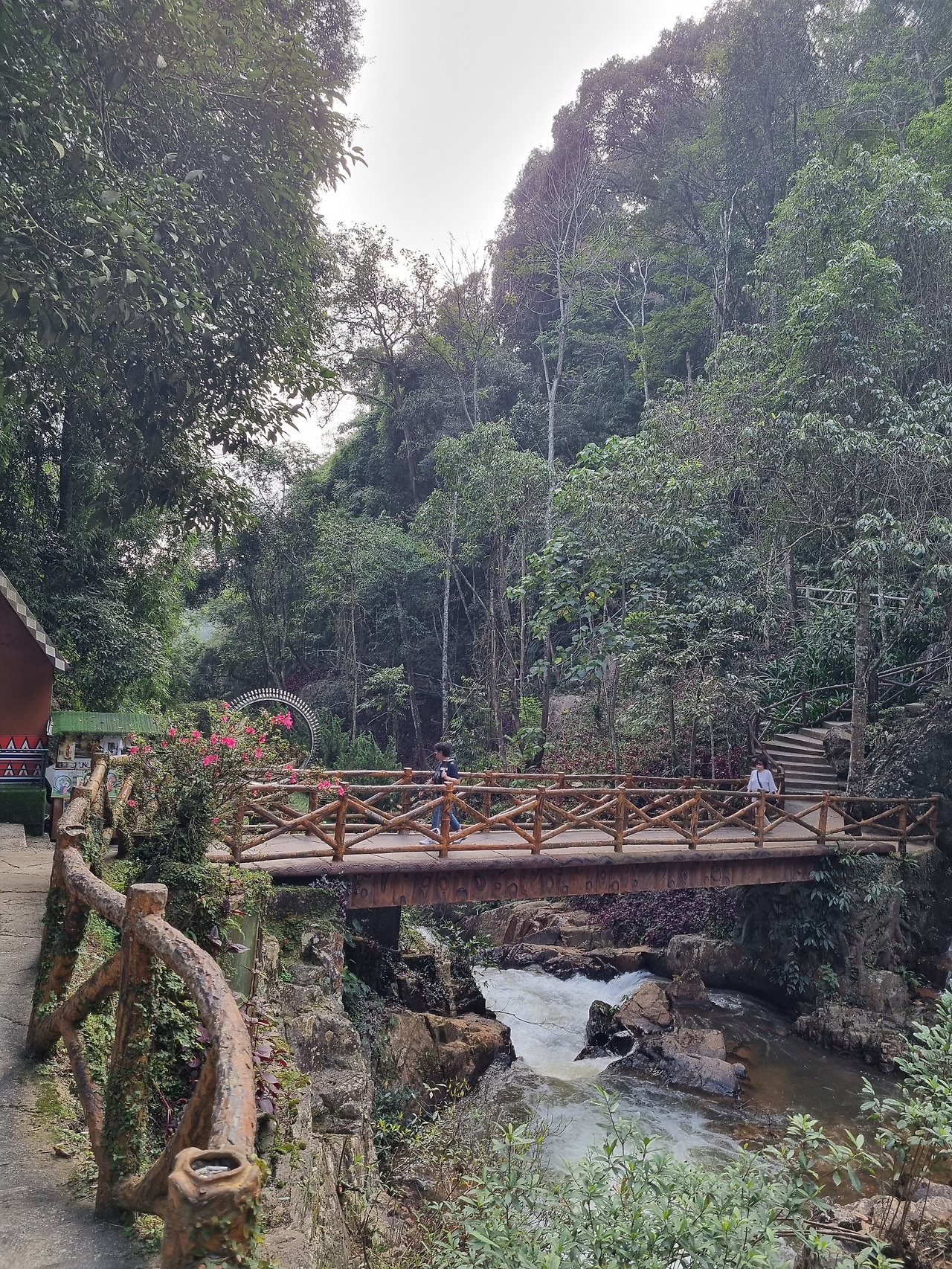 입장권을 끊어 들어가니 길이 계속 아래쪽으로 연결된다. 꽤 가파른 내리막 길인데 나중에 힘들어서 어떻게 올라오나, 걱정이 된다. 옆으로는 루지를 타고 가는 사람, 집라인을 타고 내려가는 사람들이 보인다. 한참을 내려가니 폭포가 나온다. 그다지 큰 폭포라 할 수는 없지만 주위 경치와 아주 잘 어울린다. 약간의 사람 손이 가해진 것 같은데, 주위의 풍경과 다리 등 인공적인 가설물과 함께 아주 아름답다. 조그만 판타지 세상과 같은 느낌이 든다. 사파의 까오깟 마을을 축소해 놓은 듯한 느낌이다.