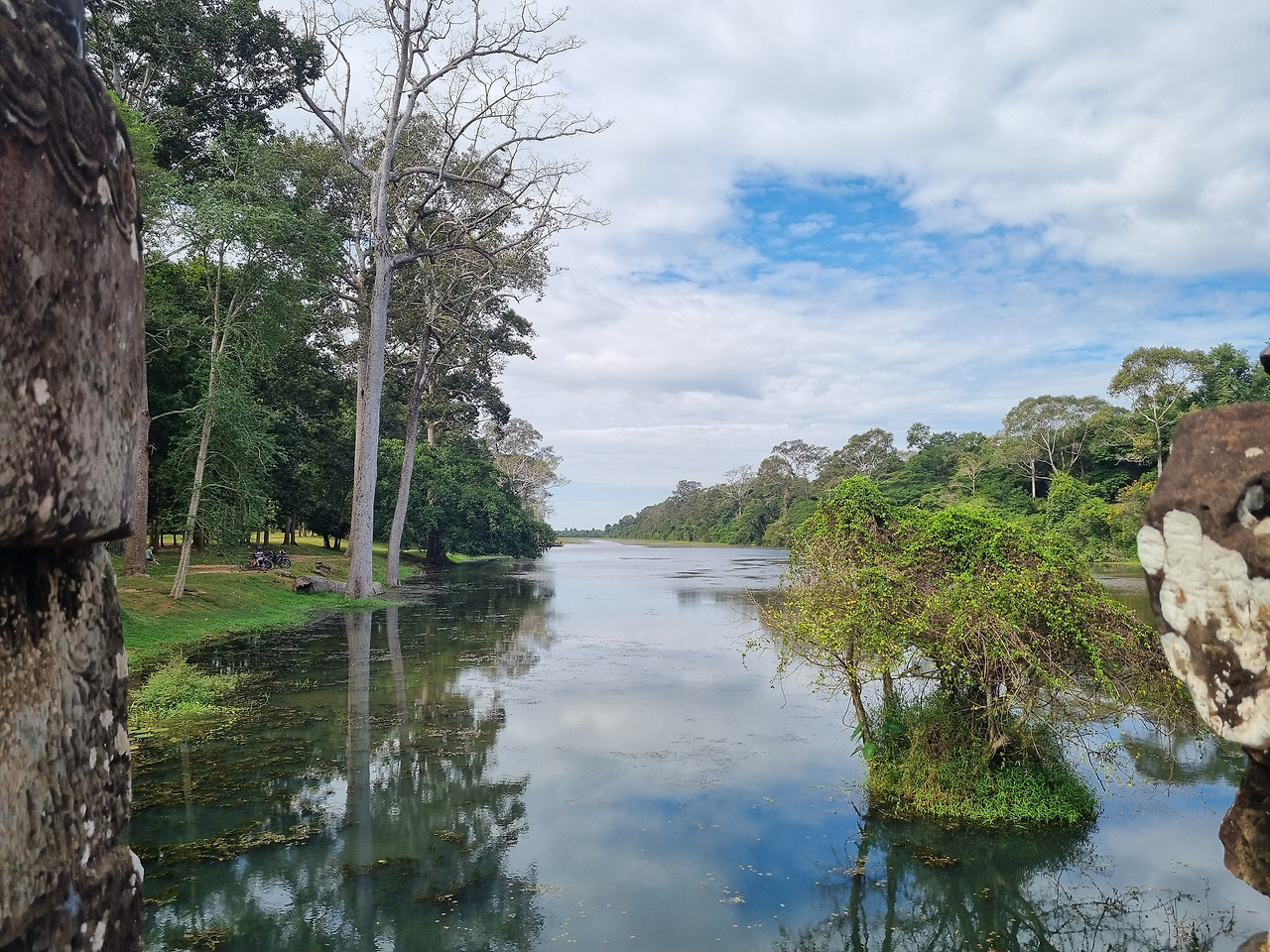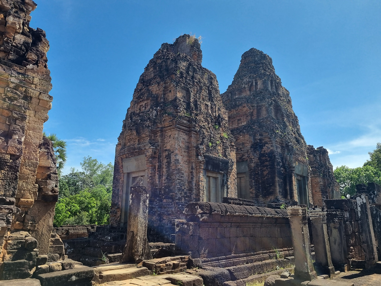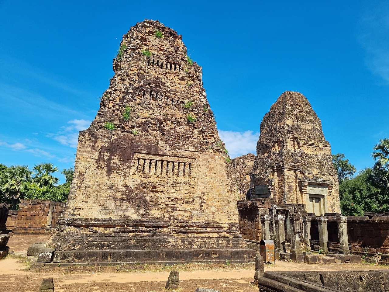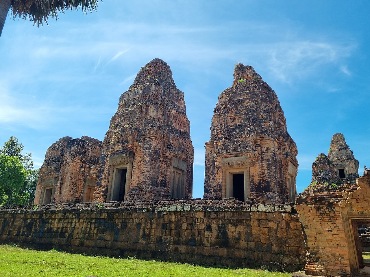 다음은 네악 뻬안(Neak Pean) 사원이다. 이 사찰은 특이하게 호수 가운데 위치하고 있다. 구글 지도를 네악 뻬안에 맞추어 놓고 스쿠터를 달린다. 조금 가다 보니 길가에 사원 유적이 보인다. 내려서 확인해 보니 프레루프라는 힌두교 사원이라 한다. 마치 메 "산"(山) 자 같은 모습의 3개의 부드러운 탑으로 이루어진 사원이다. 프레루프는 일몰 때 환상적인 아름다움을 볼 수 있다고 하여 일몰 명소라 한다.