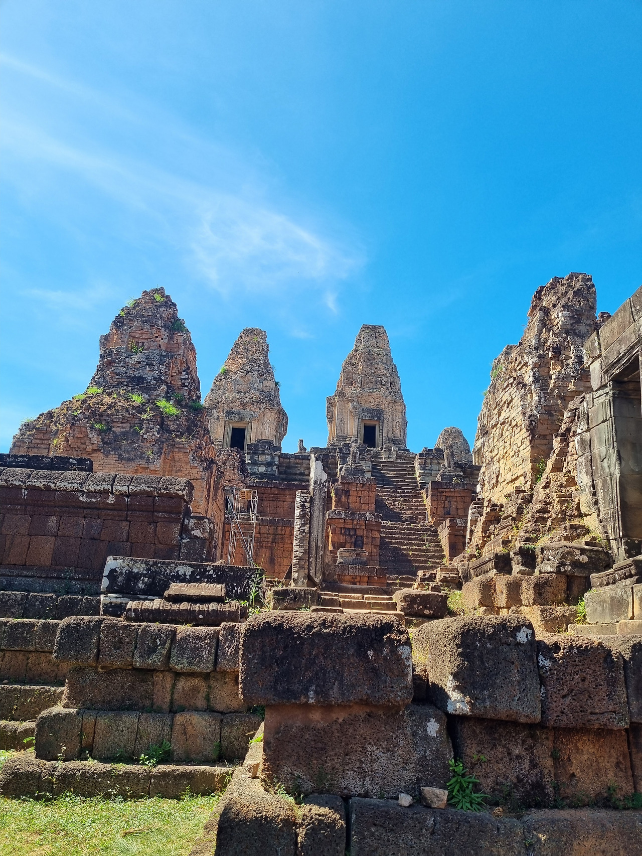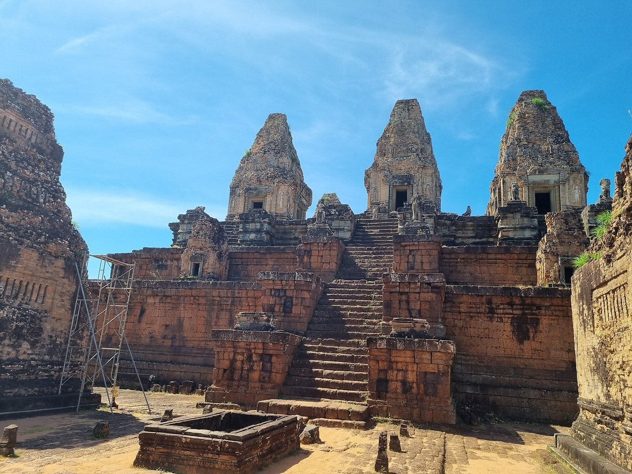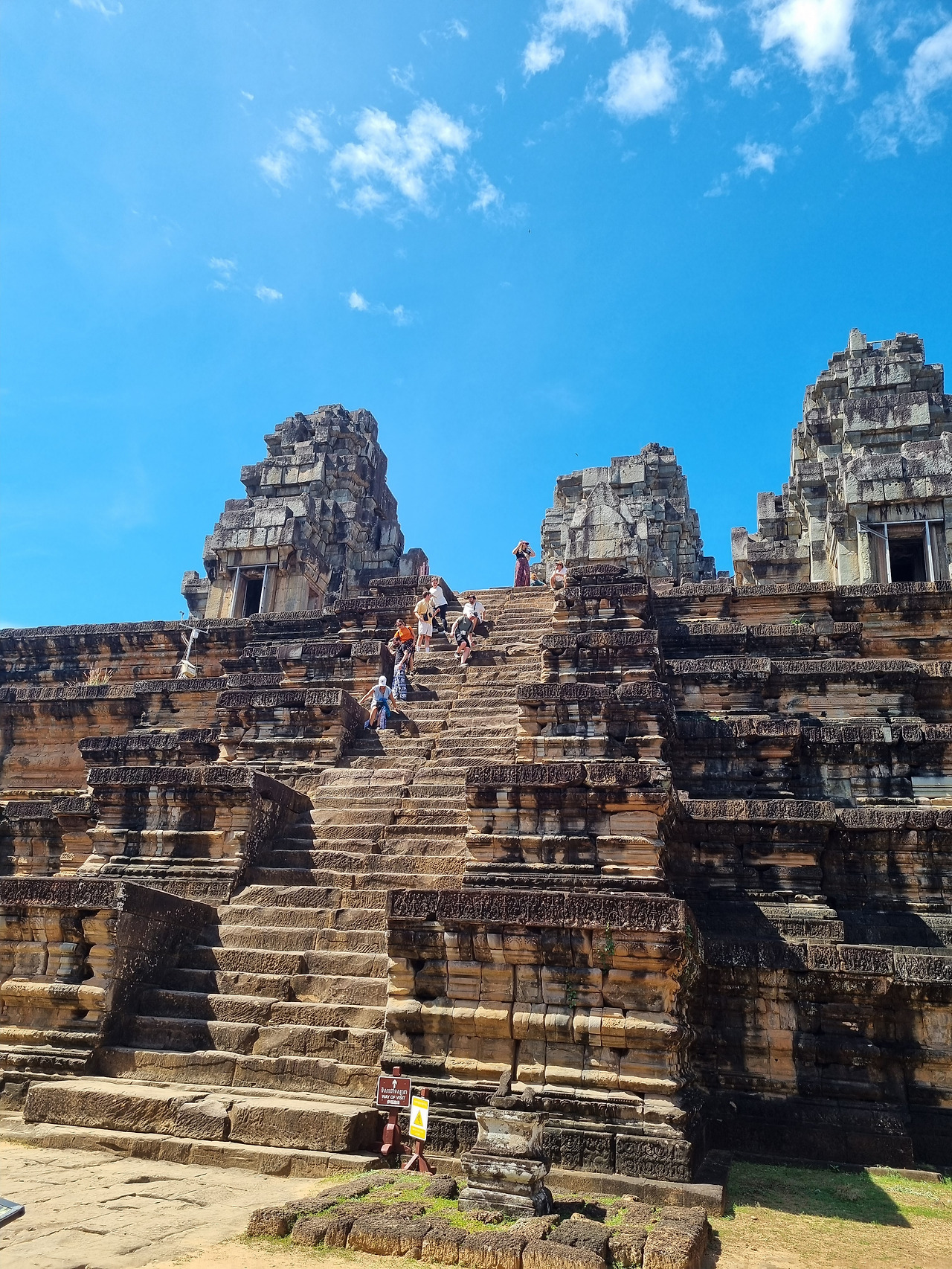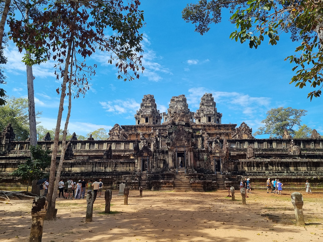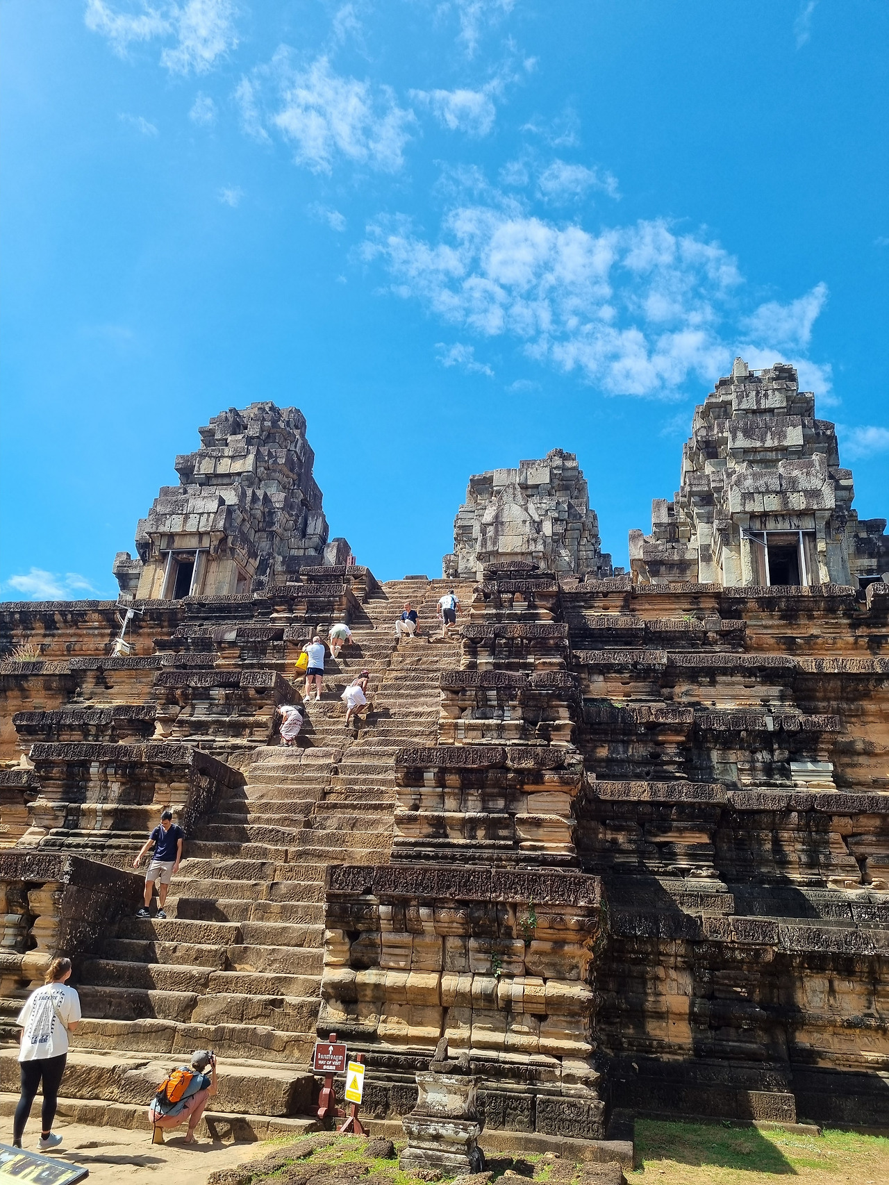 처음 찾은 곳은 타케오(Ta Keo) 사원이다. 타케오 사원은 힌두교 사원인데, 챗GPT에 "타케오"의 의미를 물으니 "크고 신성한 산"이라는 뜻이라 한다. 정말인지 모르겠다. 챗GPT는 하도 능청스럽게 거짓말을 잘하기 때문에 대답을 곧이곧대로 믿어서는 안 된다.