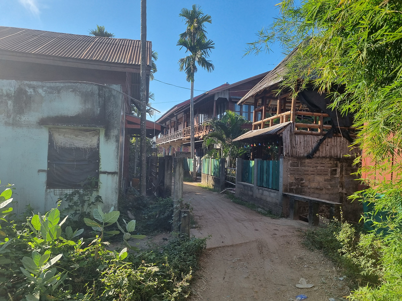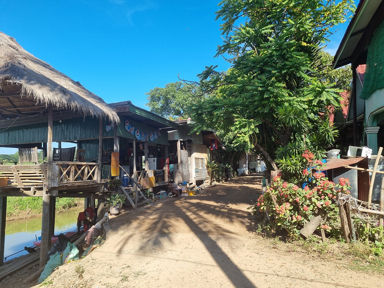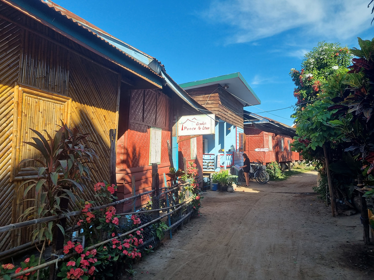 200미터쯤 되는 상업구간을 지나면 강변으로 띄엄띄엄 방갈로가 나오고, 안쪽으로는 농가가 드문드문 늘어서있다. 이곳 돈뎃의 주민들은 극소수의 농민을 제외한 거의 대부분이 식당, 게스트하우스 등 숙박업, 여행사, 잡화점 등 관광 관련업에 종사하고 있다고 보면 된다. 이곳을 찾는 사람들은 거의가 외국인 관광객이다. 보통 외국인 상대로 관광업에 종사하는 사람은 닳아서 뺀질뺀질한데, 이곳 사람들은 그렇지 않다. 순박하기 그지없다. 개들까지 사람을 닮았은지 모두들 순둥이다.