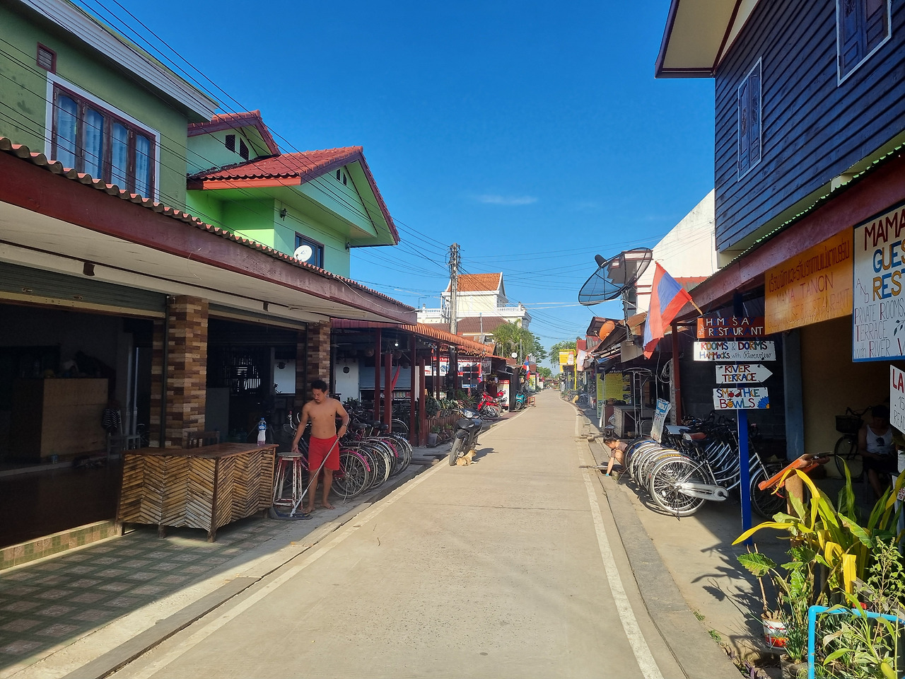 아침에 일어나니 6시이다. 시원할 때 한번 마을이나 둘러볼까 해서 밖으로 나왔다. 숙소에서 선착장까지는 약 500미터 정도이다. 시판돈을 찾는 사람들은 거의가 이곳 돈뎃 섬으로 온다. 돈뎃 섬은 아래위로 긴 이등변 삼각형처럼 생겼는데, 선착장은 위 꼭짓점에 위치하고 있다. 배를 내려 오른쪽이 선셋 방향, 왼쪽이 선라이즈 방향이다. 배를 내리면 바로 곧은 길이 나오는데, 이 길이 바로 돈뎃의 메인 스트리트이다. 길 양쪽에는 식당, 여행사, 게스트 하우스 등이 늘어서있다.
