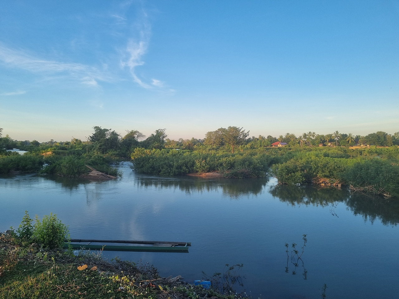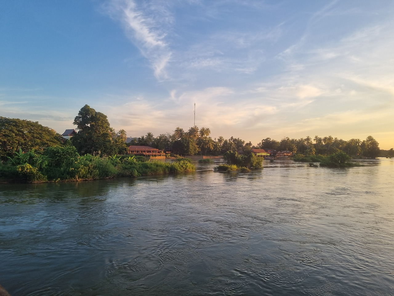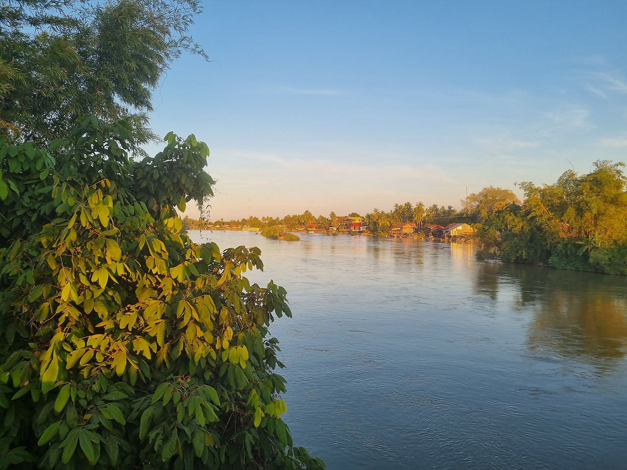 이제 돌아가야 한다. 오후 5시가 가까워지니 햇살도 약해지고 하늘도 붉게 물들기 시작한다. 이곳의 최고의 풍경과 최고의 시간은 바로 이때이다. 넘어가는 햇빛을 받으며 흘러가는 메콩강은 뭐라 말할 수 없는 감동을 준다. 강변 마을을 지나는 도로를 천천히 달린다. 아이들은 급한 물살에도 아랑곳없이 메콩강에서 물놀이를 한다. 이 구간은 강 위에 섬들이 떠있는지, 아니면 섬 사이로 강물이 흐르는지 모를 만큼 섬들과 강줄기가 서로 얽혀있다.
