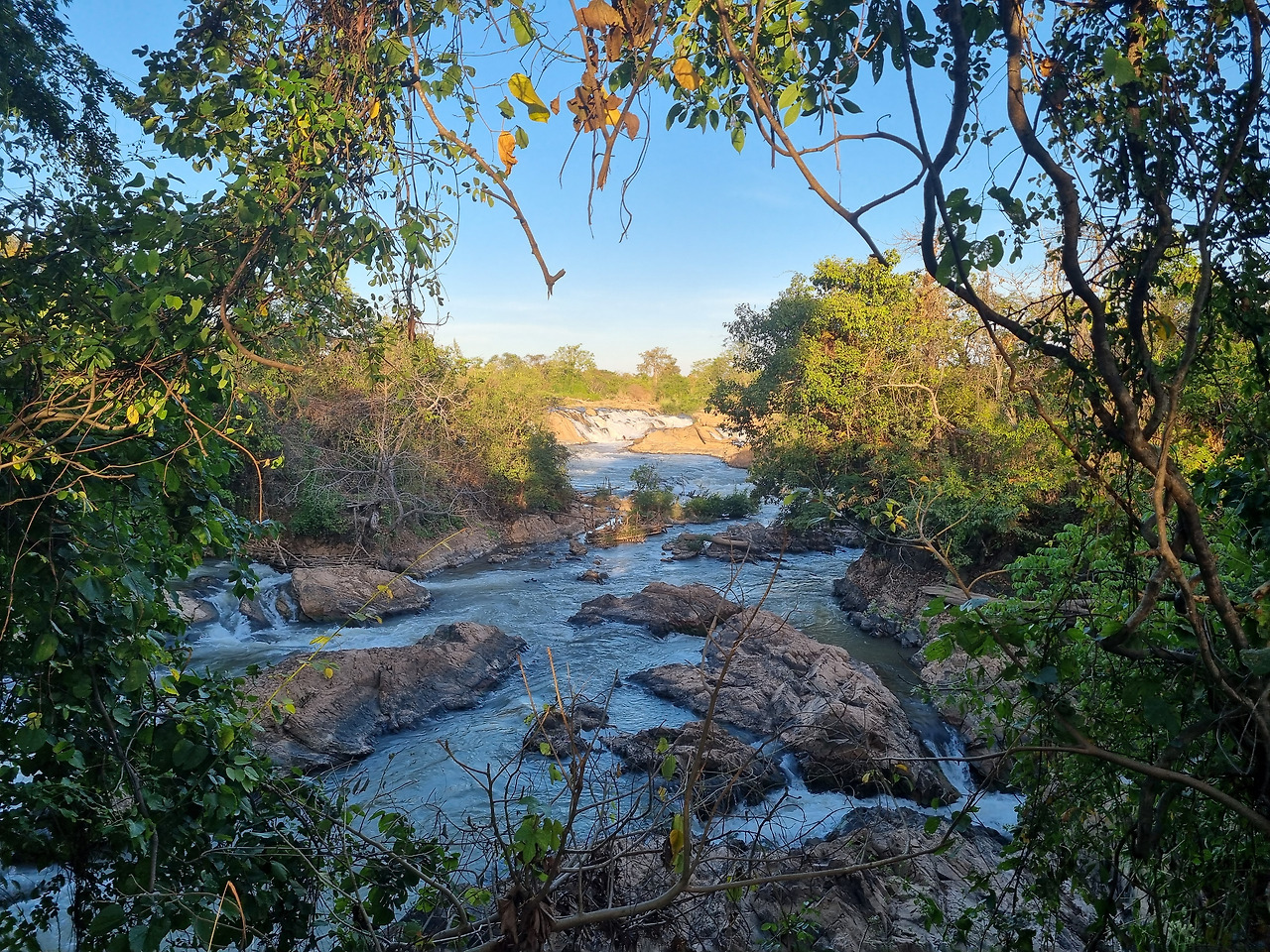 콘파소이 폭포는 폭포라기보다는 물살이 급한 여울들이 많이 모여있는 그런 느낌이다. 여러 여울마다 고기잡이를 위한 나무틀이 설치되어 있다. 이곳은 몇 년 전 KBS에서 방영된 <메콩강의 어부>에서 소개된 바 있다. 쏟아지는 폭포 속에서 사람 다리만 한 물고기를 잡아내는 광경은 정말 감동적이었다. 이전에 왔을 때는 어부 한 사람이 고기를 잡는 모습을 보았는데, 오늘은 그런 모습이 보이지 않는다.