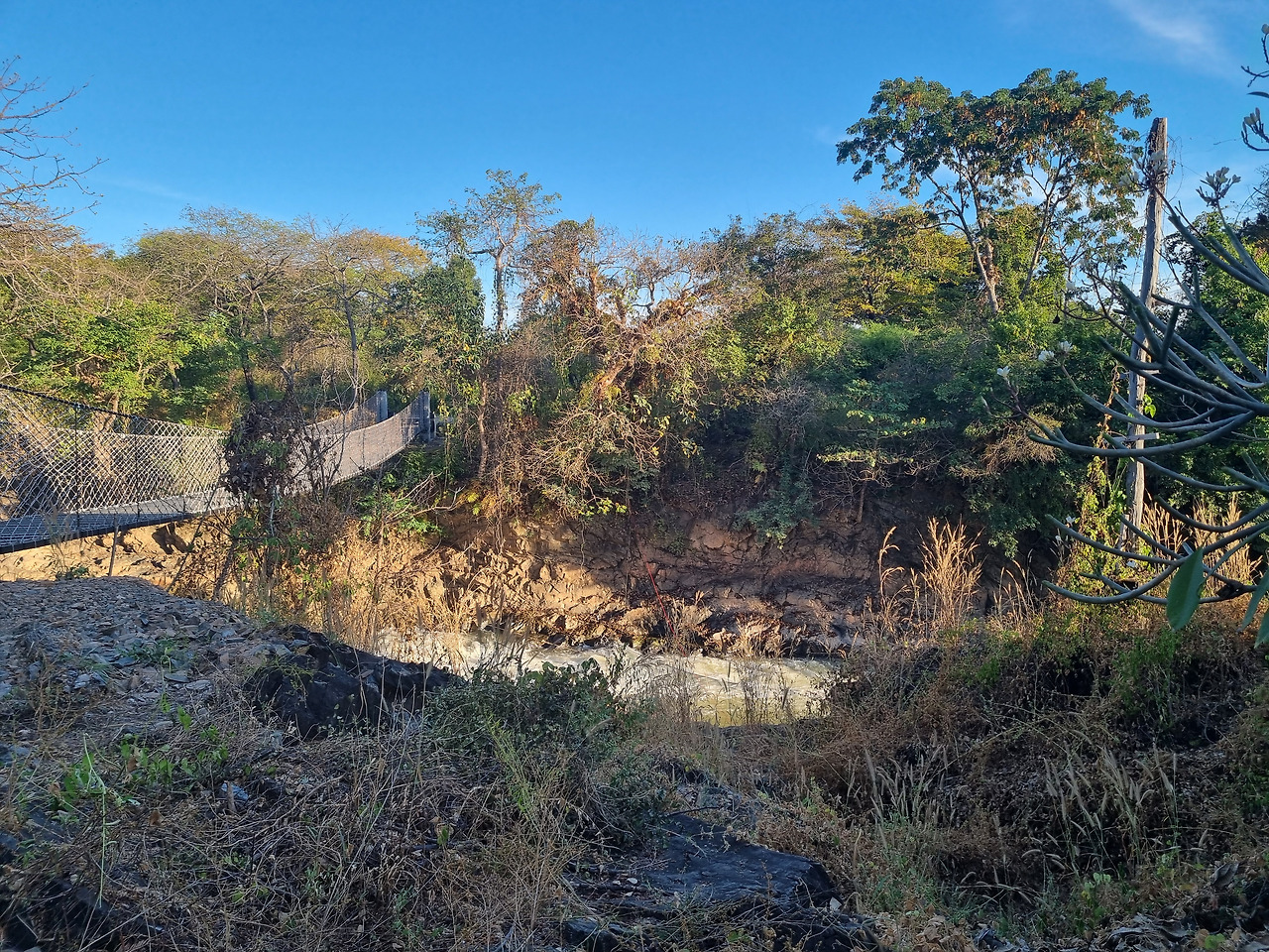 300미터 정도 되는 오토바이가 들어가는 길은 옛날 그대로이다. 험한 흙길이라 무척 위험하다. 특히 모래보다 더 가는 흙더미가 덮인 구간이 많아 아주 조심스럽다. 오토바이 바퀴가 미끄러질 수가 있기 때문이다. 오토바이를 주차하고 인디아나 존스 다리 쪽으로 갔다. 이건 다행이다. 이전에 비해 튼튼하고 안전한 다리가 새로 만들어져 있다.