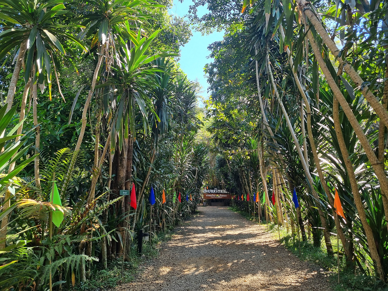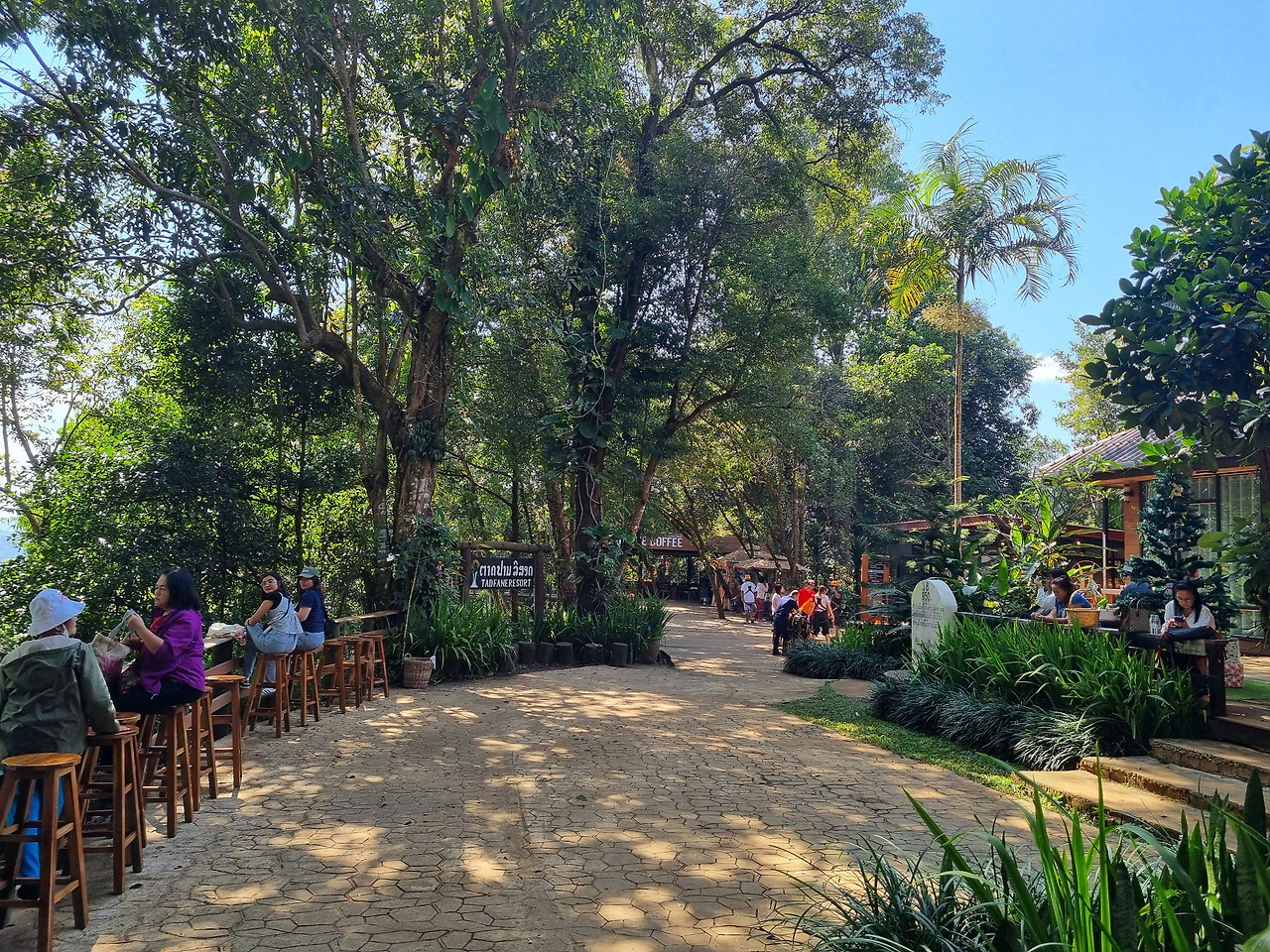 타드 팡(Tad Phang) 폭포까지 가는 도로는 포장이 잘 되어있다. 팍세 시가지를 빠져나오니 교통량도 많지 않아 달리기도 편하다. 도로를 한참 달리다 보니 오른쪽으로 타드 팡 폭포로 들어가는 샛길이 나타난다. 타드 팡 폭포에 도착하였다. 라오스어로 타드가 폭포란 뜻이므로 팡 폭포라 해야 맞겠지만 일반적으로 타드 팡 폭포, 즉 타드 팡 워터폴로 부르는 것 같다. 리조트 안에 위치하고 있는데, 3만 낍인가 입장료를 받는다. 리조트 안으로 들어가면 레스토랑, 커피숍, 기념품점 등이 들어서 있고 정원도 잘 가꿔져 있다. 굵은 대나무로 조성된 정원이 인상적이다..