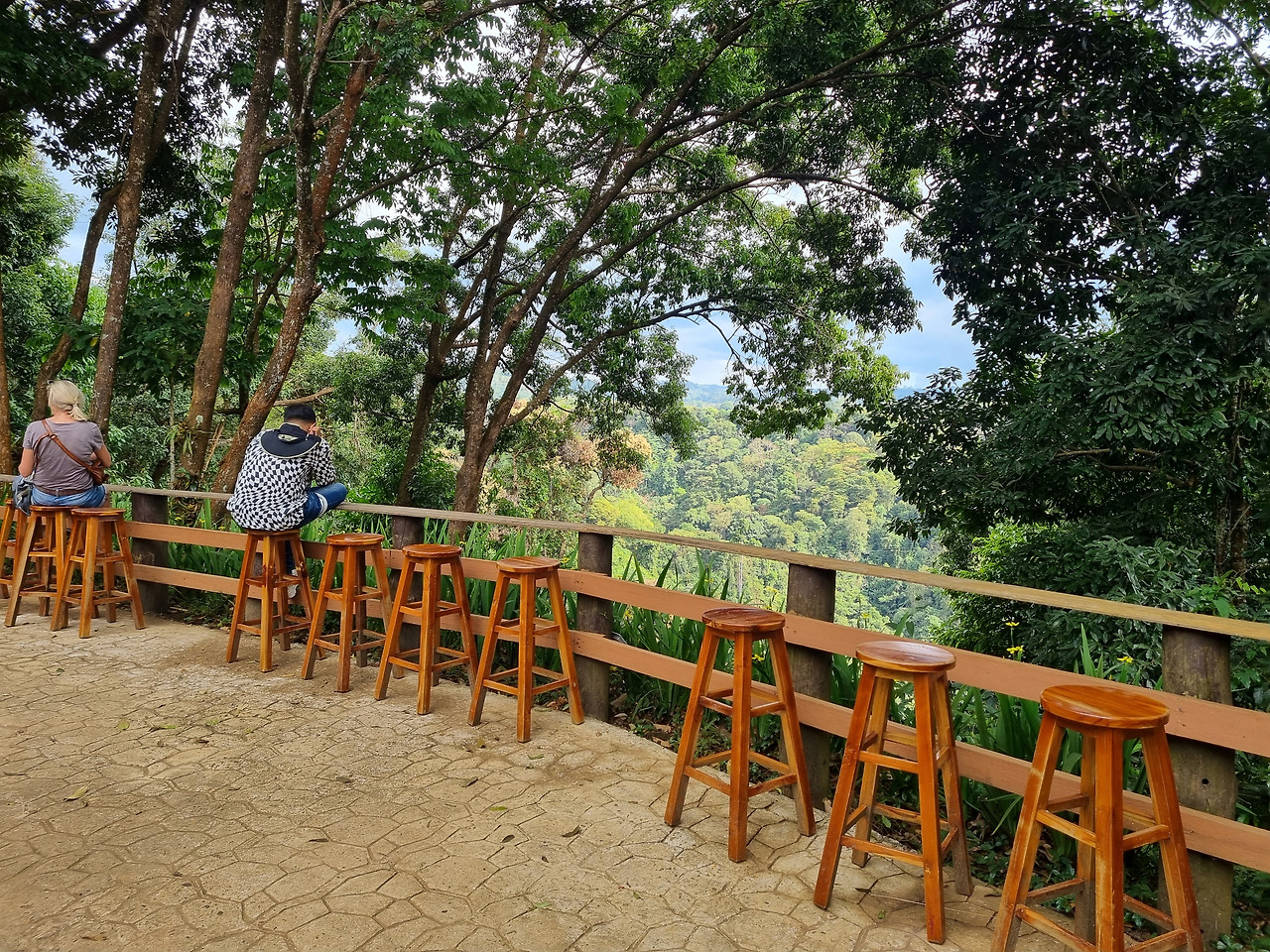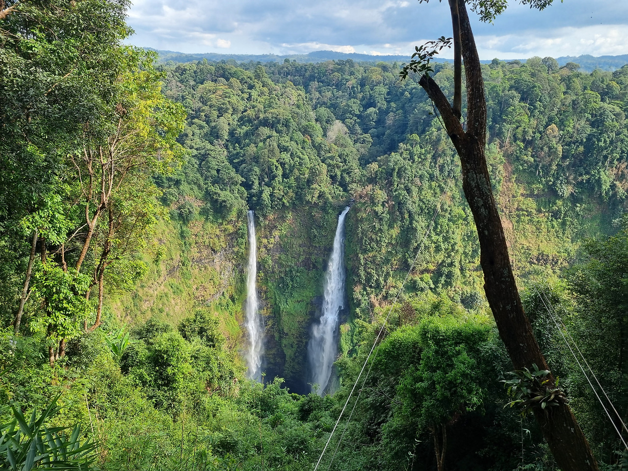 타드 팡 폭포는 계곡 저 건너편에 위치하고 있다. 웅장한 쌍둥이 폭포로서 높이가 120미터에 이른다고 한다. 두 줄기의 물줄기가 시원하게 흘러내린다. 아주 멋있는 폭포이다. 계곡 이쪽에서 앉아서 차을 마시며 폭포를 감상할 수 있도록 자리를 만들어 놓았다. 브로벤 커피를 마시며 폭포를 감상하고 싶었지만, 그랬다간 오늘 밤 잠을 못 잔다. 폭포 아래로 내려가는 길이 있는 것 같은데 계곡이 너무 깊어 엄두가 안 난다. 시원한 바람을 맞으며 아름다운 폭포를 감상하였다.