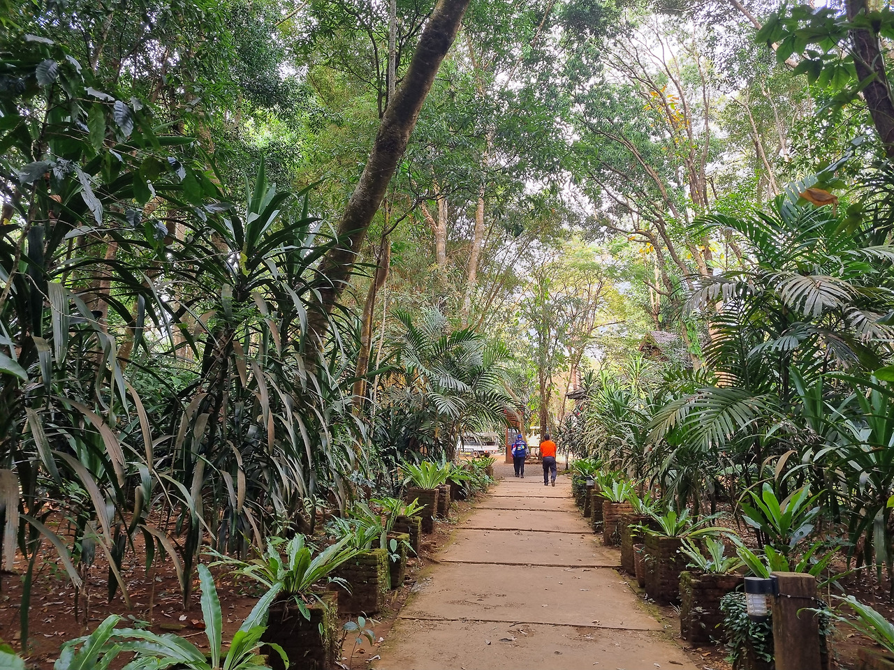 폭포도 좋지만 정원도 꼭 감상할 필요가 있다. 굵은 대나무와 열대 식물로 이루어진 정원은 아름답다. 우리나라의 정원과 비교하자면 우리나라의 정원은 깔끔하다는 느낌이 들지만, 이곳의 정원은 우거진 열대식물로 인해 풍요롭다는 느낌을 갖게 한다. 그리 넓지 않은 정원을 이곳저곳 다 둘러보고 나오니 검은 옷차림의 거의 20여 명에 가까운 남자들이 몰려들어온다. 아마 오토바이 동호회인 것 같다. 모두들 아주 비싸 보이는 큰 오토바이를 타고 있는데, 아마 태국인들인 것 같다.