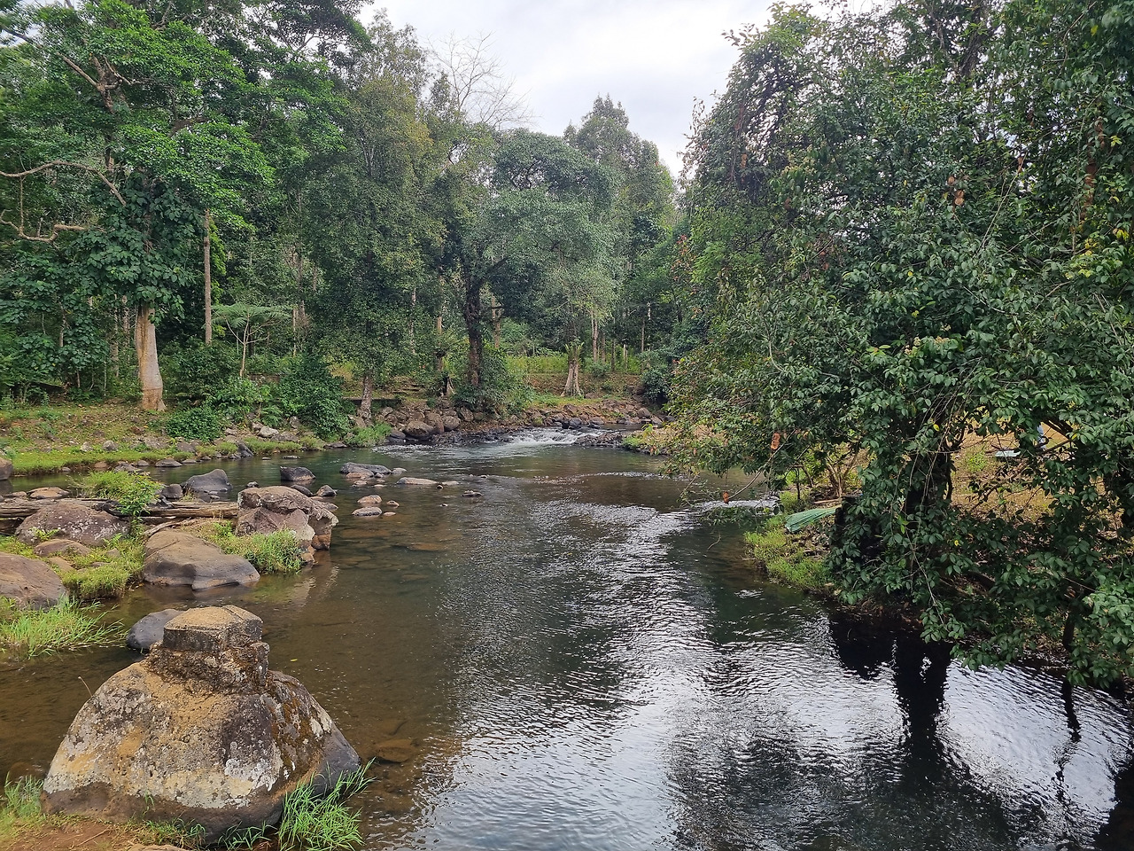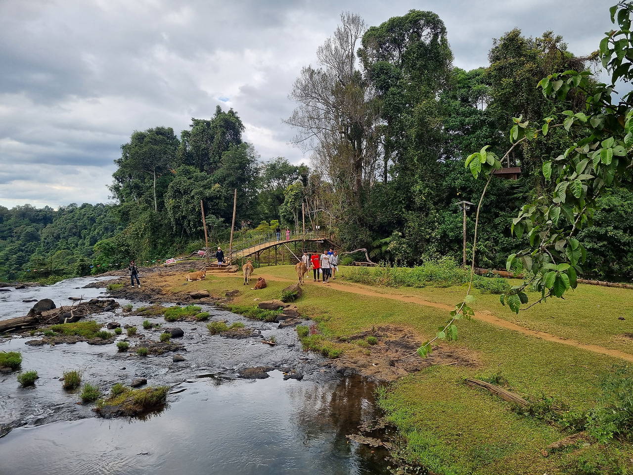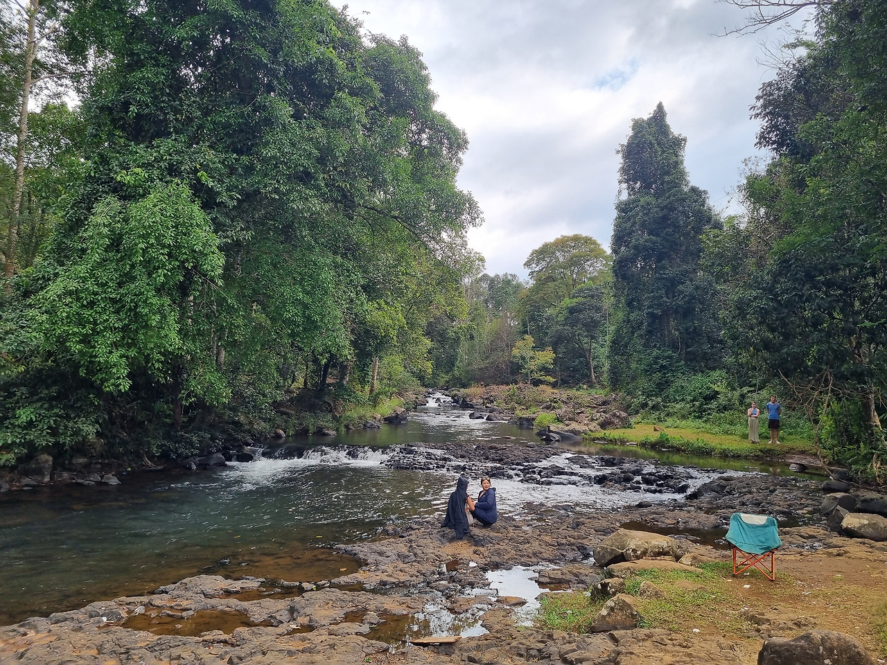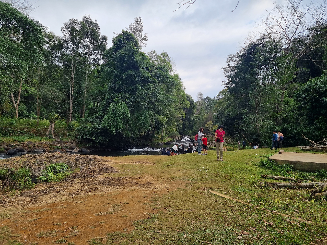 타드 양(Tad Yeung) 폭포에 도착했다. 정원 같았던 타드 팡 폭포에 비해서는 좀 거친 느낌이다. 입장료는 5만 낍으로서, 타드팡보다도 비싸다. 변변한 시설도 없는 것 같은데 뭐가 이리 비싸냐 하는 생각이 든다. 입구를 통해 들어가면 소풍에 어울릴 것 같은 계곡이 나온다. 이곳은 타드 양 폭포 위쪽으로서 가족과 친구들끼리 소풍온 사람들이 많이 보인다. 모두들 둘러앉아서 음식을 함께 먹으며 즐거운 시간을 보내고 있다.