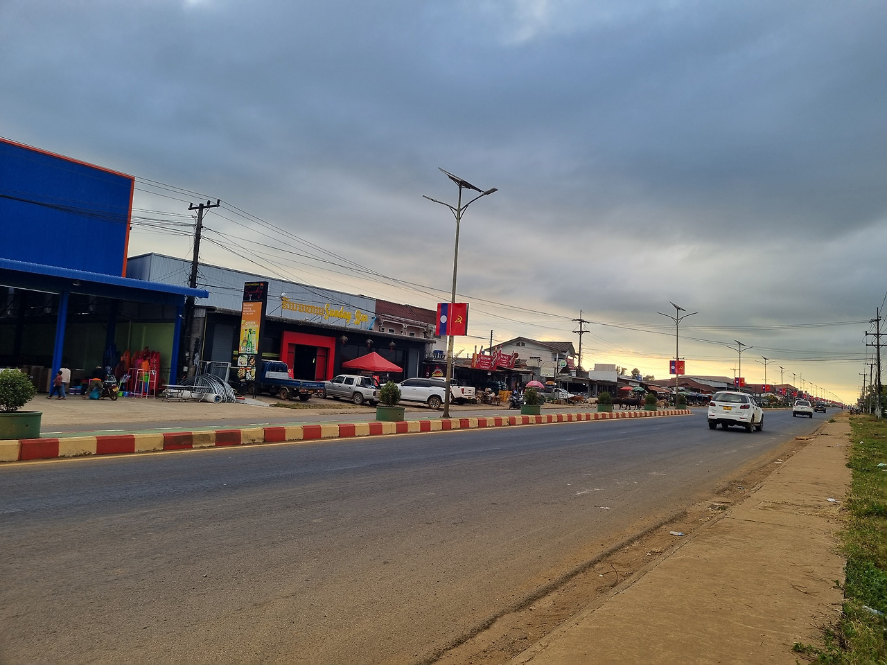 팍송 방향으로 출발을 했다. 핸드폰은 이미 배터리가 모두 방전되어 내비를 볼 수 없었다. 아까 확인하기는 팍송까지의 거리는 50킬로로 나왔다. 그렇다면 여기서부터는 45킬로 정도 된다. 도로 양쪽으로는 드문드문 집이 나오다가는 가끔 작은 마을도 나타난다. 늦은 오후가 되니 날씨도 서늘해진다. 한참을 달리니 제법 큰 마을이 나타난다. 길가에는 제법 큰 시장도 보인다. 타드 양에서 출발해서 기껏해야 15킬로 정도 달린 것 같다. 마을을 지나니 길이 세 갈레로 갈라진 길이 나온다. 어느 쪽 길로 갈까 잠시 망설이다가 똑바른 길이라 생각되는 제일 오른쪽 길을 택했다.