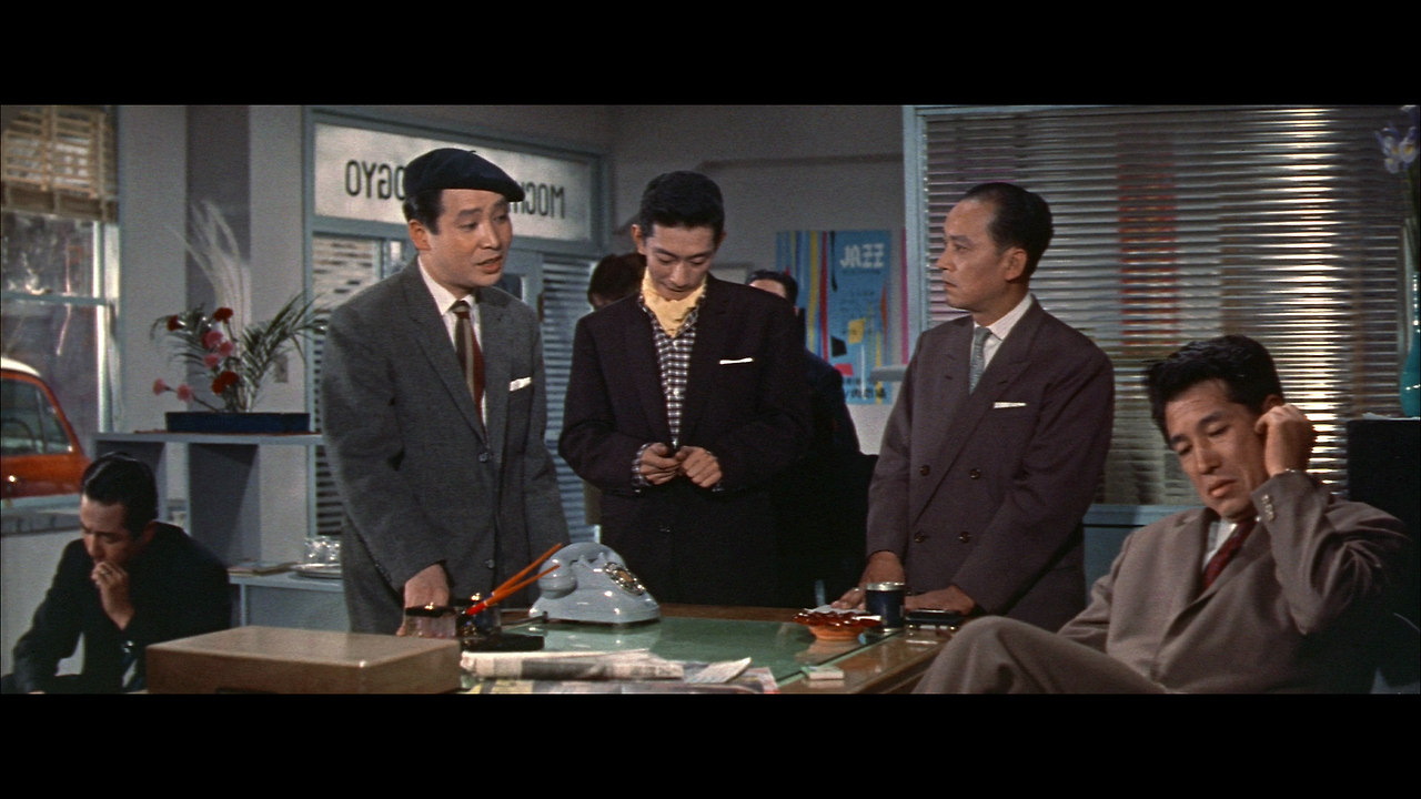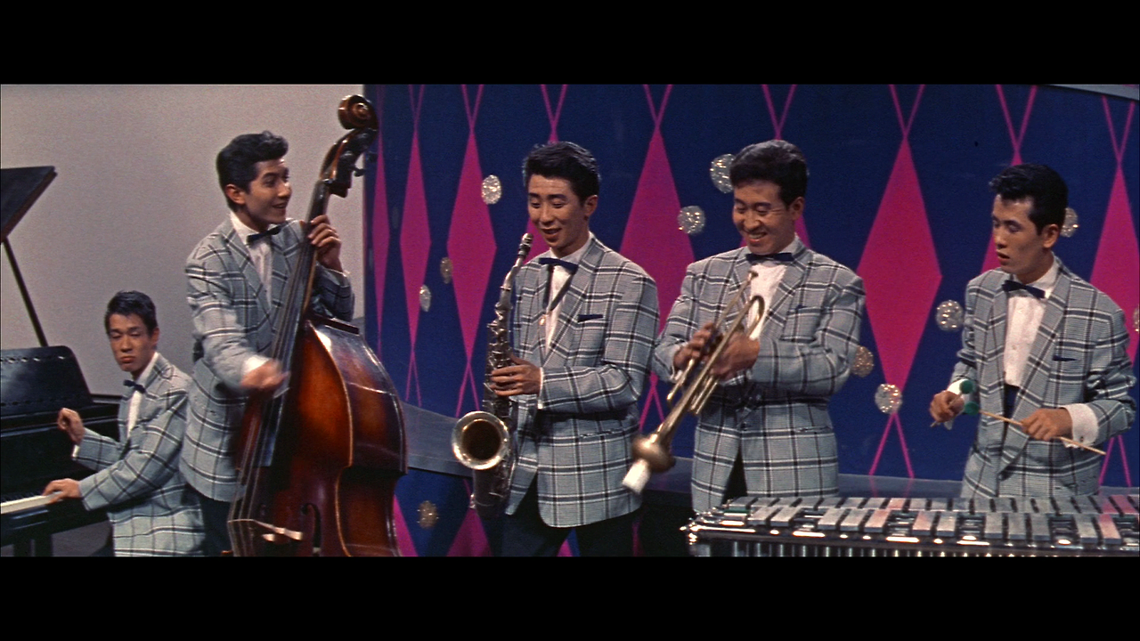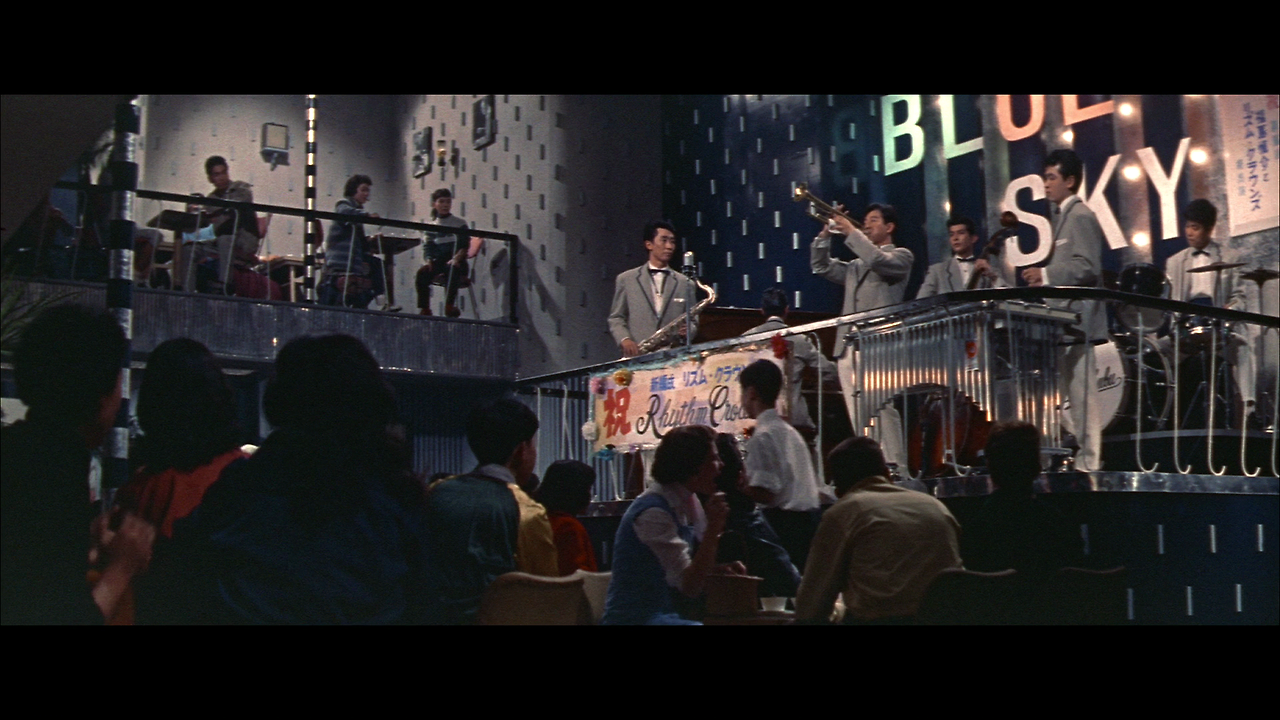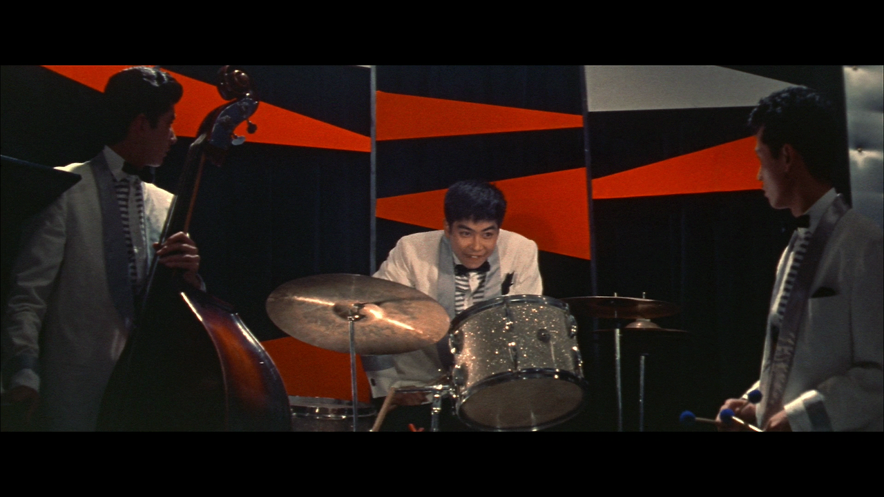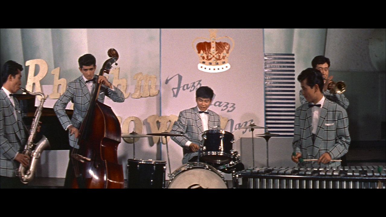 도쿄의 중심지, 긴자. 어느 나이트클럽에서 재즈 밴드인 “후쿠시마 신스케(福島慎介)와 여섯 조커들”이 큰 인기를 얻고 있었다. 어느 날 밤 음대생인 고쿠부 에이지(国分英次)가 클럽을 찾아와, 밴드 매니저이자 신스케의 여동생인 후쿠시마 미야코(福島美弥子)에게 자신의 형인 고쿠부 쇼이치(国分正一)를 드러머로 채용해 달라고 부탁한다. 그렇지만 밴드에는 이미 인기 드러머인 찰리 사쿠라다가 있기 때문에 미야코는 그 부탁을 완곡히 거절한다.