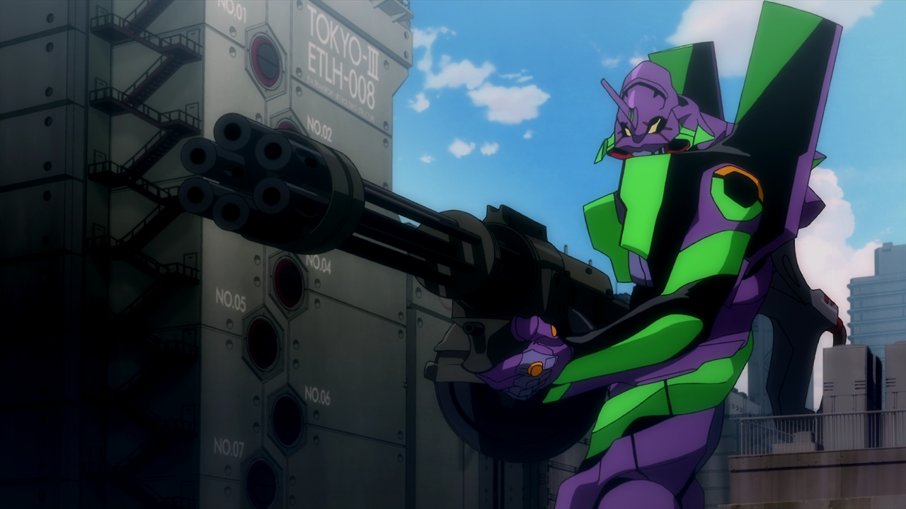 제3 신도쿄의 지하공간인 “지오프런트”에 위치한 유엔 직속의 특무기관 “네르프”(NERV)의 최고 사령관인 겐도는 NERV가 개발한 범용 휴머노이드 병기인 “에반게리온 초호기”를 신지에게 보여준다. 겐도는 신지에게 에반게리온의 조종사가 되어 지금 당장 출동하여 시토들과 싸우라고 명령하지만, 신지는 자신은 할 수 없다고 소리친다. 그렇지만 또 다른 조종사인 아야나미 레이(綾波レイ)가 심한 부상을 입은 것을 보고 에바에 타기로 결심한다. 신지는 일단 에바 초호기를 움직이는 데는 성공하지만 두 걸음째에 넘어져 네 번째 시토에게 붙잡혀 팔과 머리가 파괴된다. 그러나 넘어진 초호기가 갑자기 폭주를 하면서 시토를 공격하며, 결국 시토는 자폭하고 만다.