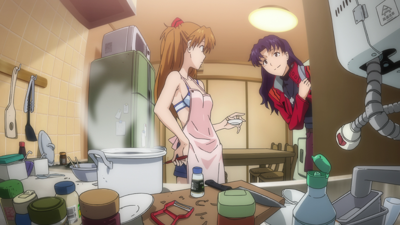 다시 무대는 일본으로 바뀐다. 이카리 신지(碇シンジ)는 아버지 이카리 겐도(碇ゲンドウ)와 함께 돌아가신 엄마 이카리 유이(碇ユイ)의 무덤을 찾아간다. 신지는 카츠라기 미사토(葛城ミサト)의 차를 타고 돌아오는 길에 바다 위를 걷는 일곱 번째 시토를 목격한다. 그곳에 시키나미 아스카 랑글레(式波・アスカ・ラングレー)가 조종하는 에반게리온 2호기가 나타나 간단하게 시토를 격파한다.