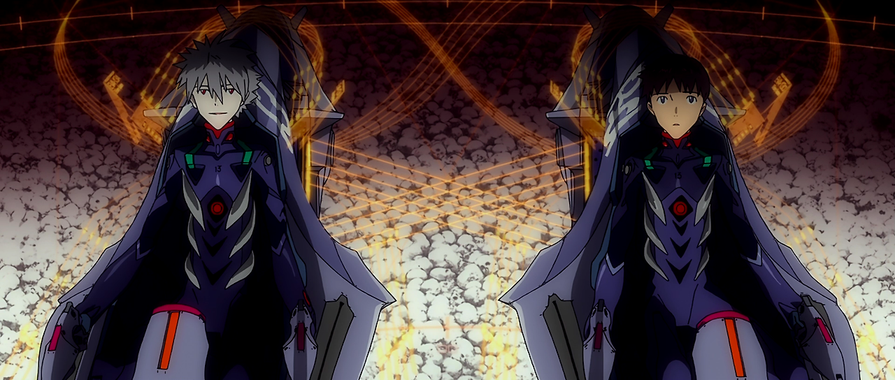 신지는 에바 13호기가 완성된 후에도 이에 탑승하기를 거부하지만, 카오루가 신지의 DSS 쵸커를 해제하여 자신의 목에 채우고 설득하는 바람에 카오루와 함께 13호기에 타기로 결정한다. 신지와 카오루가 탑승한 에바 13호기는 마크 09에 탑승한 유사 아야나미 레이와 함께 서드 앰팩트의 폭발 중심인 센트럴 도그마의 가장 깊은 곳에 도달하는데, 카오루는 두 번째 시토 릴리스와 마크 06에 꽂힌 2개의 창을 발견하고, 그 창은 여기에 있어서는 안 된다고 하면서 당황해한다.