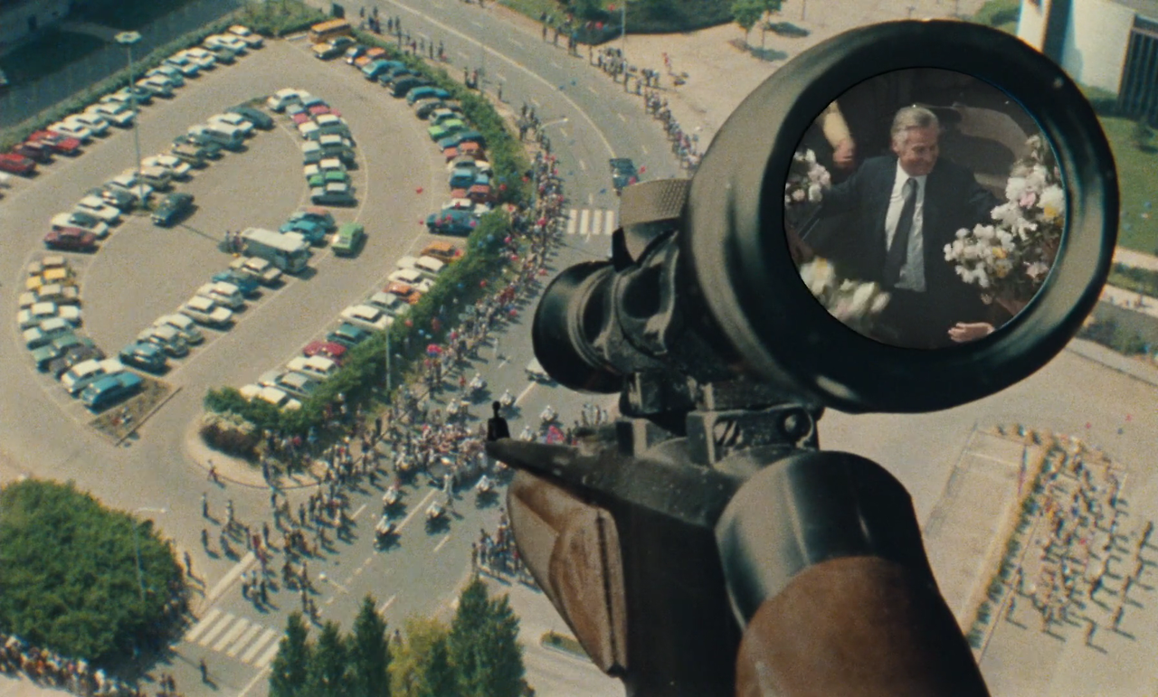 대통령이 군중들의 열렬한 환영을 받으며 오픈카를 타고 퍼레이드를 벌이고 있다. ‘다슬로우’란 이름의 사내가 옆 빌딩 옥상에서 망원경 총으로 대통령을 노리고 있다. 대통령이 탄 차가 사격범위 안으로 들어오자 그는 방아쇠를 당긴다. 그런데 총은 불발이다. 당황한 그는 다시 대통령을 겨냥하여 방아쇠를 당긴다. 역시 불발이다. 그는 한번 더 발사를 시도하지만, 이번에도 불발에 그치고, 당황한 다슬로우는 총을 들고 그 자리를 벗어난다. 빌딩을 벗어나기 위해 엘리베이터를 타자 누군가가 엘리베이터에 뛰어들어 다슬로우를 향해 총을 쏘고, 다슬로우는 그 자리에서 즉사한다.