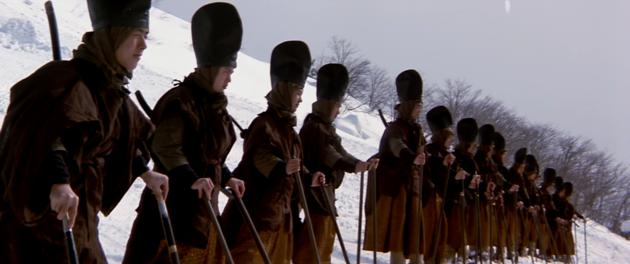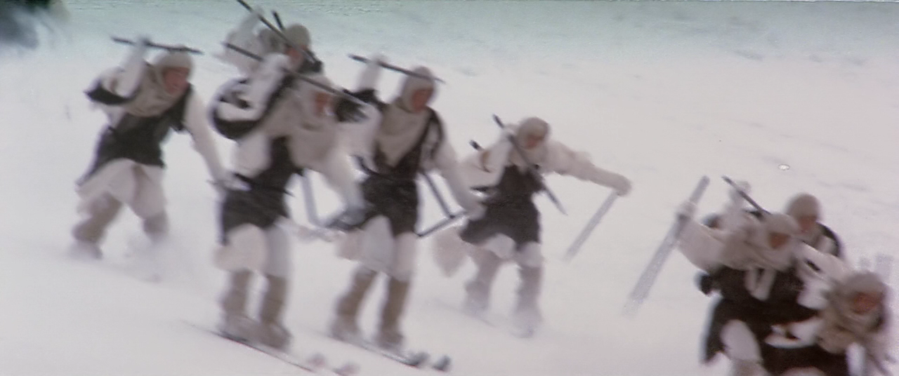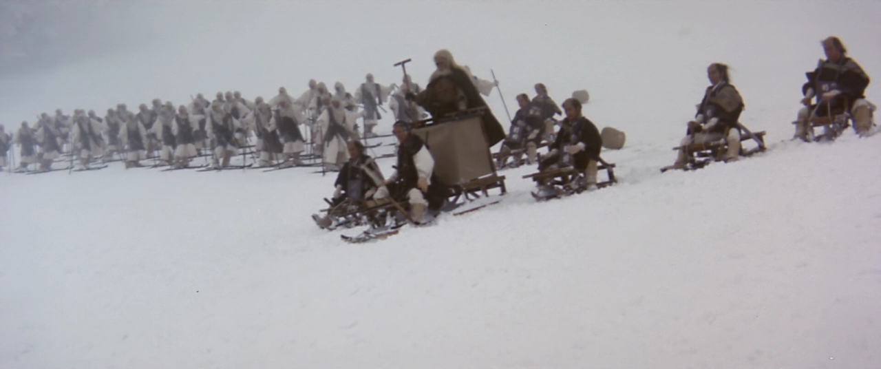 이 영화에서는 설산에서의 결투장면이 자주 등장한다. 특히 마지막에는 몇백 명의 스키병들이 잇토를 공격해 오는데, 이 장면을 찍기 위해 처음에는 주니어 스키선수들을 동원했다고 한다. 그런데 아무래도 박진감 있는 액션이 나오지 않아 결국에는 일급 프로 스키어들을 모집하여 촬영을 하였다고 한다. 그래서 그런지 스키 액션이 상당히 좋다.