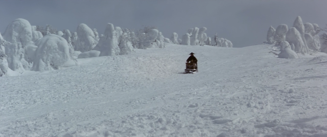 <아들을 동반한 검객 6: 지옥으로 가자꾸나! 다이고로>(子連れ狼 地獄へ行くぞ!大五郎)는 <새끼 딸린 늑대> 시리즈의 마지막 작품으로서, 1974년 일본에서 제작되었다. 지금까지의 작품이 대개 계절적으로 봄이나 여름을 시간적 배경으로 하고 있는데 비하여 이번 작품은 한겨울이다. 일본의 위쪽 지방, 특히 그 가운데서도 에치고(越後) 지방은 설국(雪國)이라 불릴 만큼 눈이 많은 지역이다. 이번 영화의 배경은 어디인지 모르겠지만, 촬영은 자오(蔵王)에 있는 스키장에서 이루어졌다고 한다. 자오는 동북지방의 미야기현에 위치한 도시이다. 필자는 이 도시에 가보진 않았지만, 차를 타고 몇 번인가 지나간 적은 있었다.