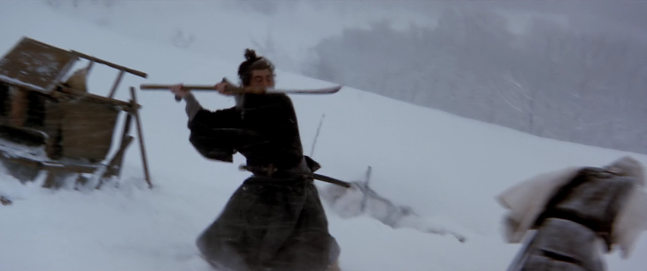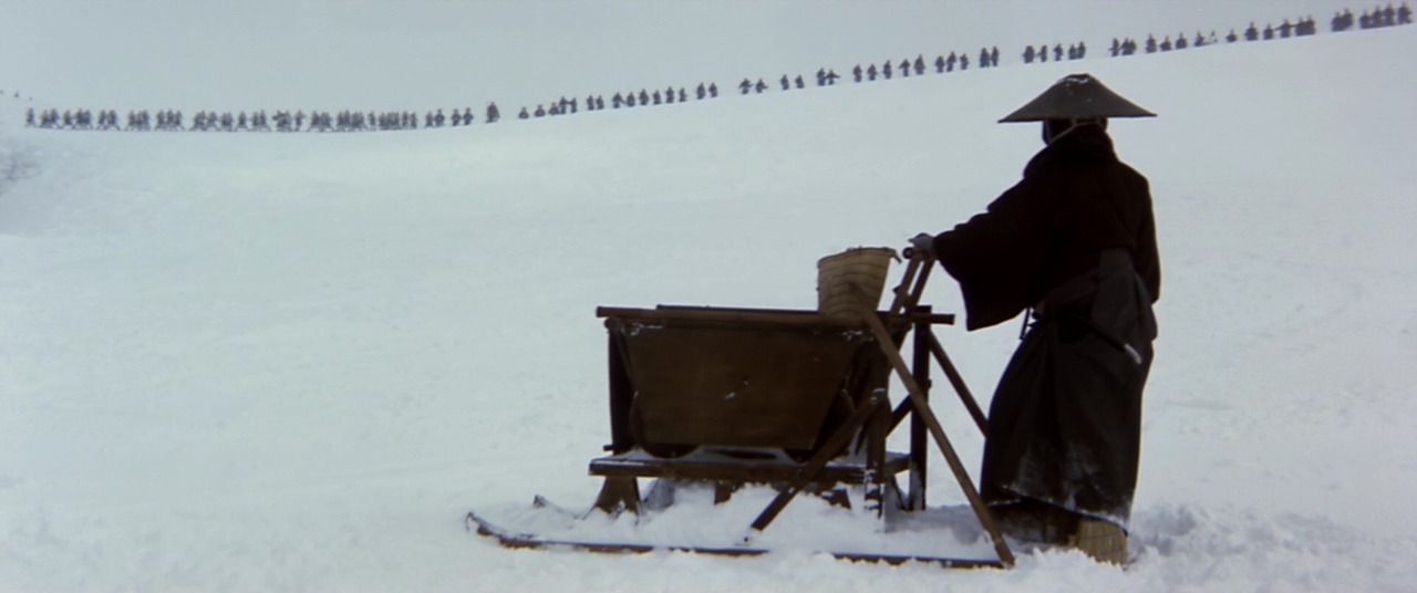 잇토는 자신도 유모차에 올라타고 언덕을 미끄러져 내려간다. 야규의 스키부대와 잇토의 유모차는 눈 위를 미끄러지면서 총과 활로서 서로 응전한다. 잇토는 사투의 끝에 궁지에 몰리기도 하지만, 겨우 몸을 피한다. 도중에 버린 유모차로 달려가지만 다이고로가 보이지 않는다. 당황한 잇토는 필사적으로 다이고로를 찾고 있는데, 뒤에서 “짠”하는 소리와 함께 다이고로가 나타난다.