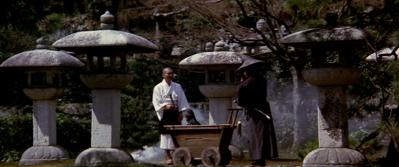 한 겨울, 오가미 잇토(拝一刀)는 바퀴대신 스키를 장착한 상자차에 어린 아들 다이고로(大五郎)를 태우고 허리까지 눈이 쌓인 설산을 지나고 있다.