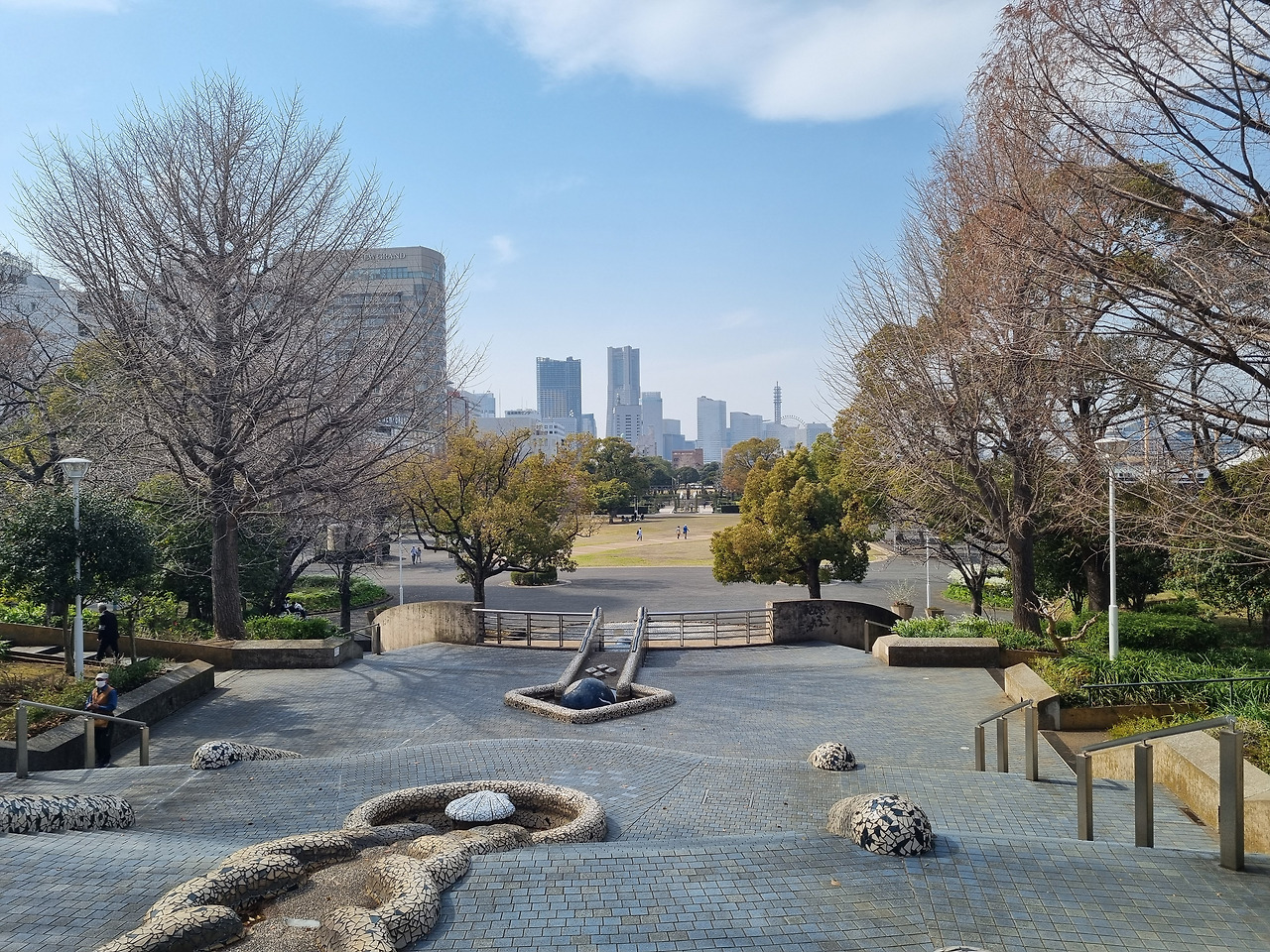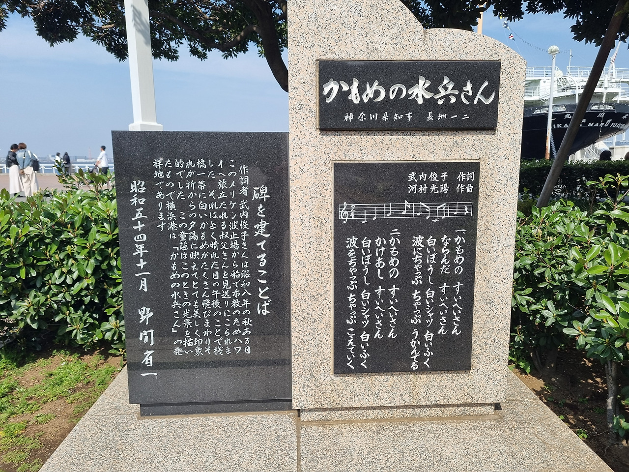 공원 안을 걷다 보니 바다 쪽에 "갈매기 수병"(かもめの水兵)라는 작은 노래비가 보인다. 어떤 노래인지 궁금해 유튜브로 찾아보니 갈매기를 수병으로 의인화한 동요이다. 공원 전체를 둘러보았는데, 바닷가에 조성된 공원이라는 이점은 있지만 어디서나 볼 수 있는 보통의 공원이라는 생각이 든다. 별로 특별한 것은 없는 공원이다.
