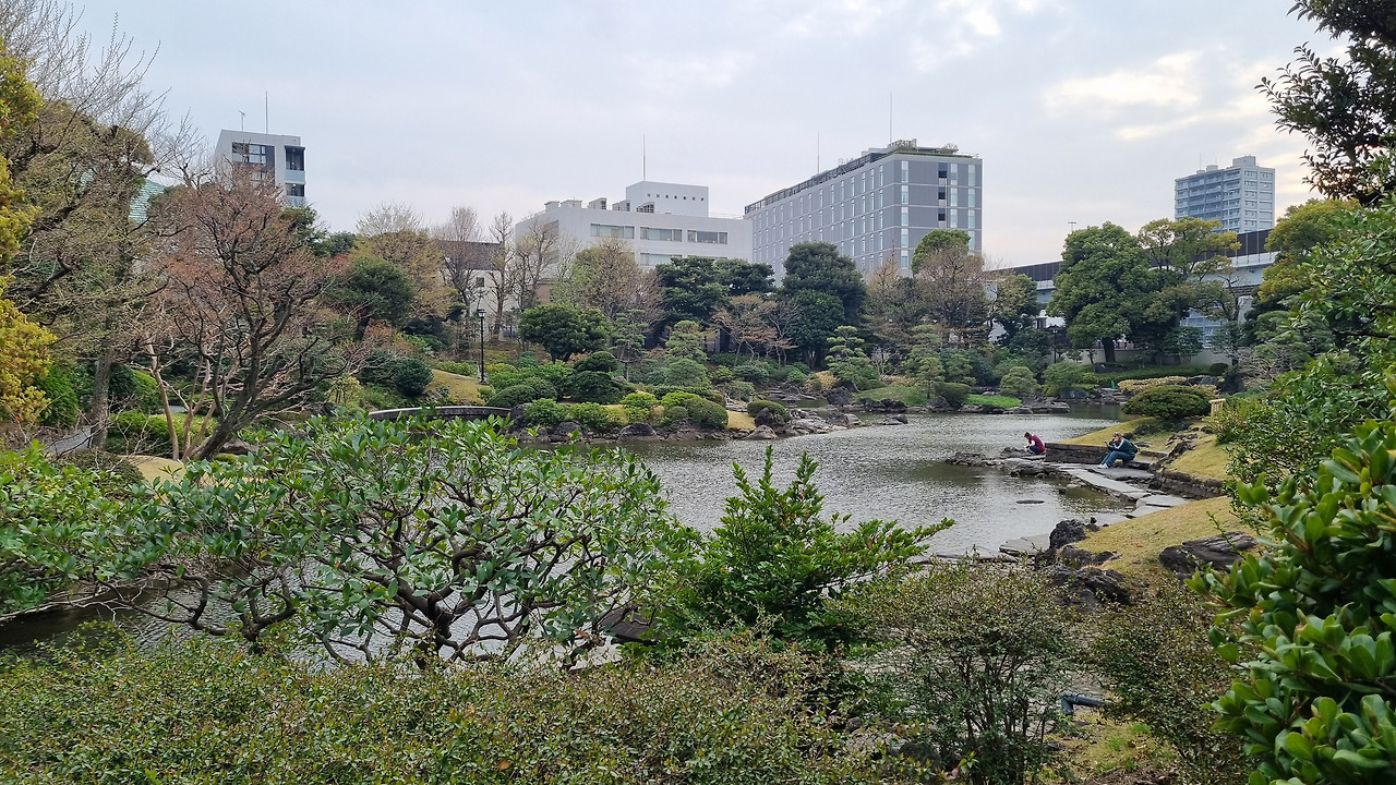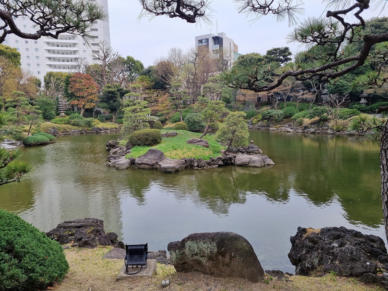 도검박물관을 나오니 옆에 야스다(安田) 정원이란 표지가 보인다. 작고 아담한 전형적인 일본정원이다. 빈틈 하나 없는 잘 디자인되고 관리된 정원이다. 가운데 연못이 있고 주위에 산책로가 있는데, 개관 시간이 지나 산책로는 폐쇄되었다. 그 때문에 앞쪽에서 정원 전경을 바라다볼 수밖에 없었는데, 아주 아름다운 공원이다. 주위를 둘러싼 빌딩들과 묘한 대조를 이룬다. 이 정원은 야스다 가문의 저택이었다고 하는데, 야스다 가문은 5만 석의 영주였다고 한다. 5만 석이라면 중간 정도 규모의 영주이다. 그럼에도 이렇게 넓고 아름다운 저택을 가졌다니 대단하다.