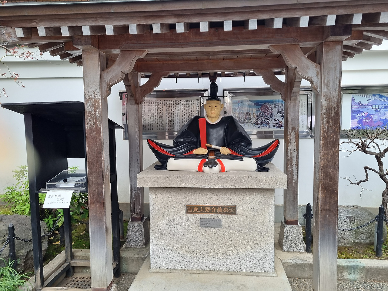 키라 저택지는 바로 47인 무사의 손에 죽은 키라 코즈케노스케의 저택 자리이다. 이곳에서 키라는 47인의 무사에 의해 목이 베여 죽었다. 저택지를 찾아가니 그곳에는 이미 주택들이 들어섰고, 한편에 20평 정도 되는 넓이의 땅에 키라의 목상과 제단이 마련되어 있었다. 그리고 옆쪽에는 붉은색의 휘장이 많이 걸려있다.