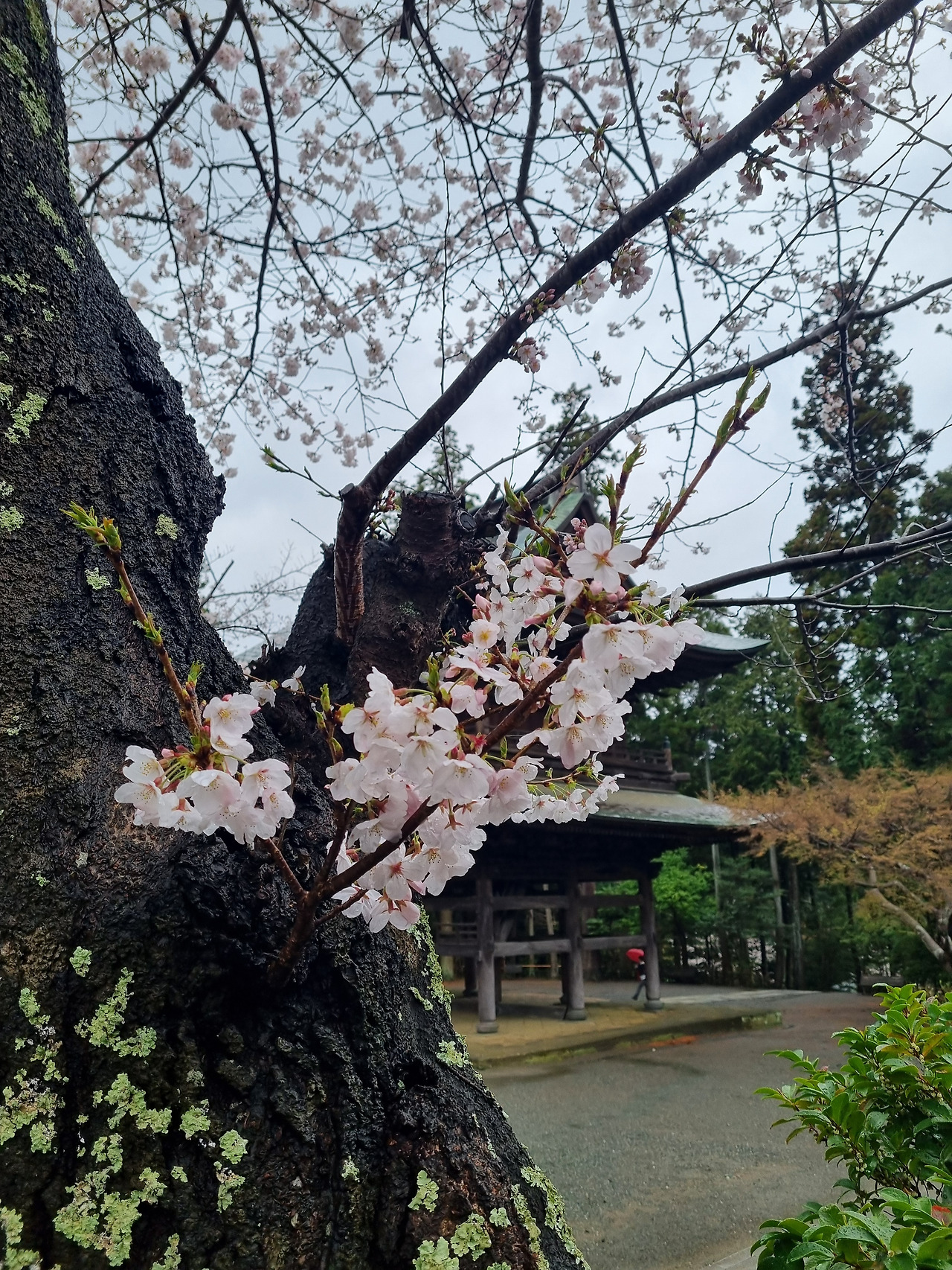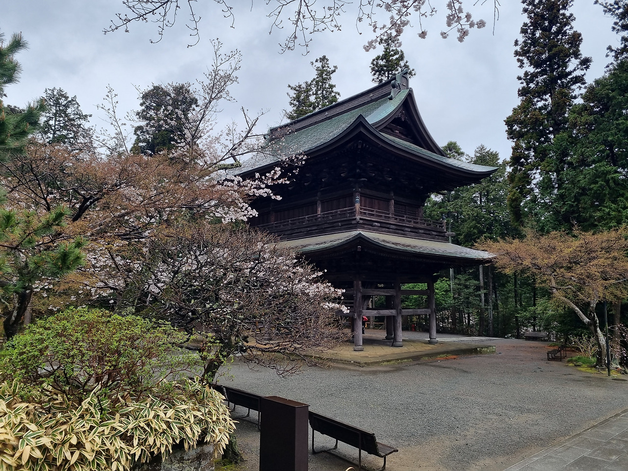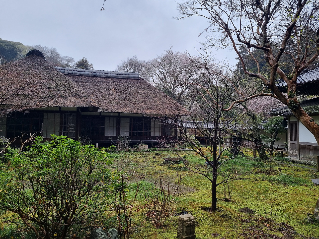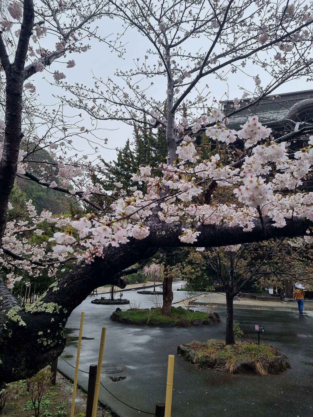 북가마쿠라 역에서 내리면 바로 옆에 엔카쿠지(円覚寺)라는 사찰이 위치하고 있다. 이 절은 가마쿠라 막부의 실권자였던 호죠 도키무내(北条時宗)가 창건했다고 한다. 800년의 역사를 가진 전통 있는 사찰이다. 입장료는 500엔, 경로요금은 없다. 입구로 들어가면 거대한 산문(山門)이 나온다. 산문을 지나면 사찰로 올라가는 길이 나온다. 아직도 비가 내린다. 추운 날씨인데도 불구하고 벚꽃이 활짝 피었다. 벚꽃 터널과 같은 그런 화려한 벚꽃이 아니다. 한 그루씩 서있는 고목에 청초하게 피어있는 꽃들이다.